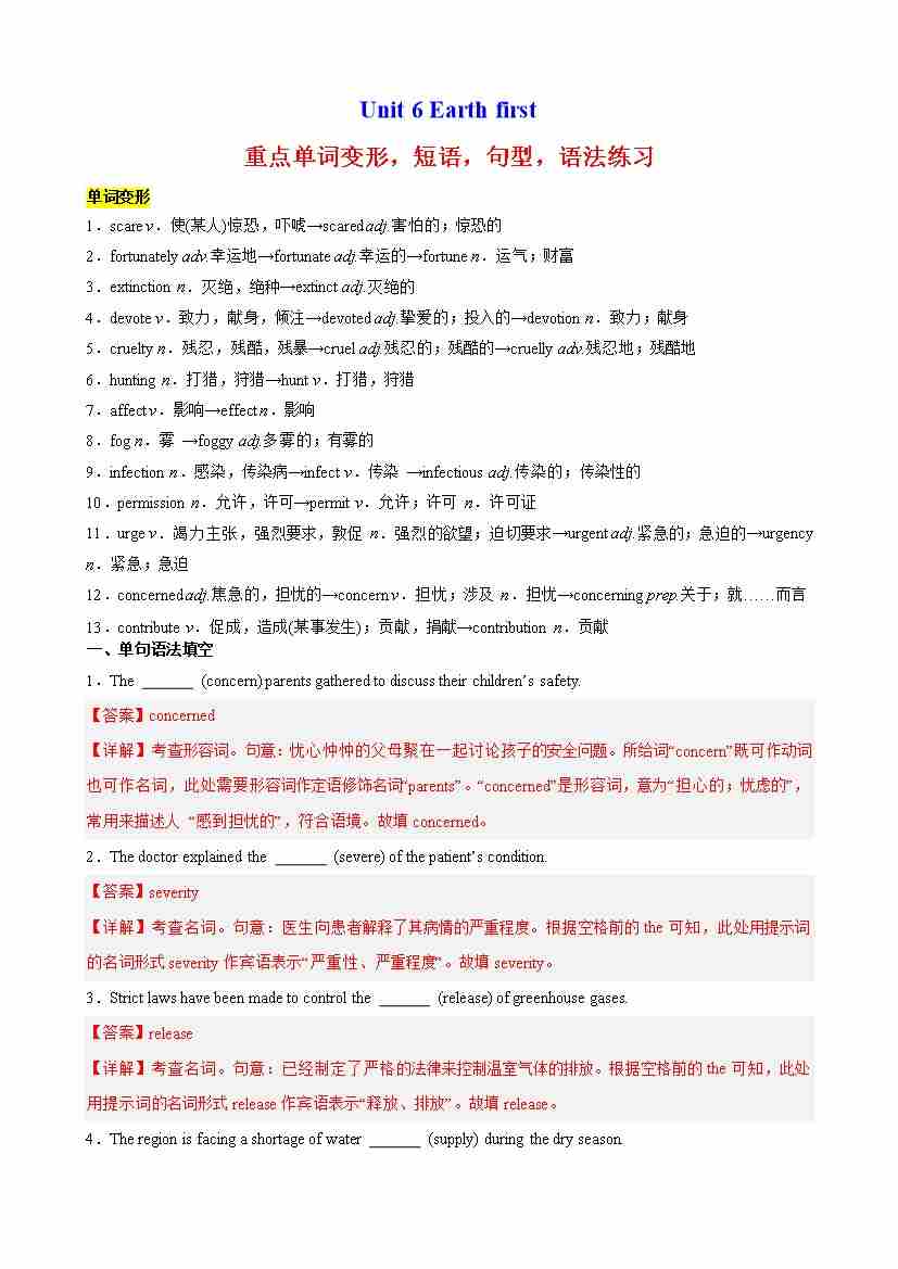 Unit 6 Earth first重点单词变形,语法,短语,句型练习(解析版)