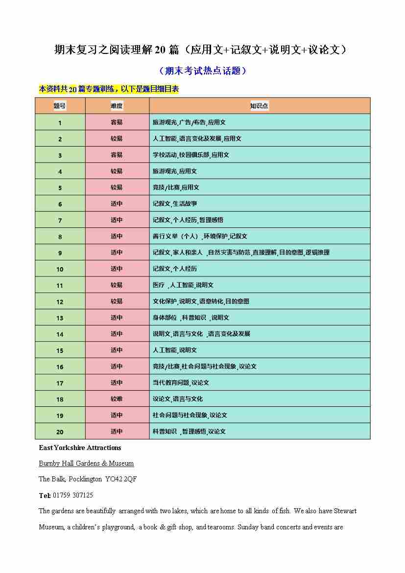 高一英语上学期期末复习之阅读理解20篇(期末热点话题)(外研版)(原卷版)