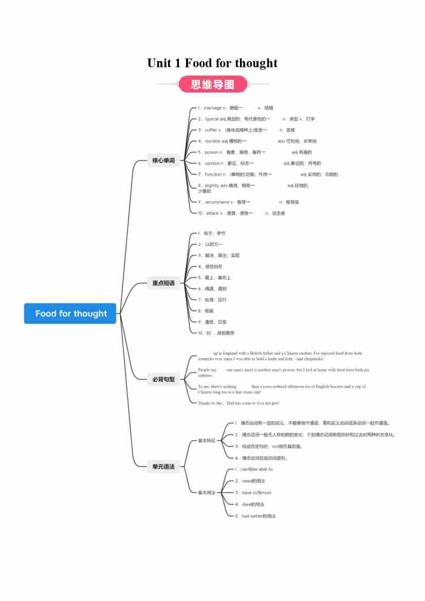 Unit 1 Food for thought(知识清单)(挖空版)