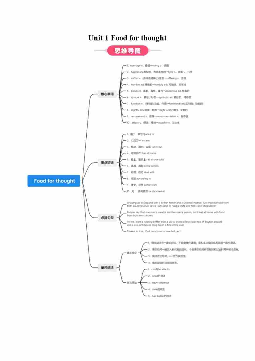 Unit 1 Food for thought(知识清单)(答案版)