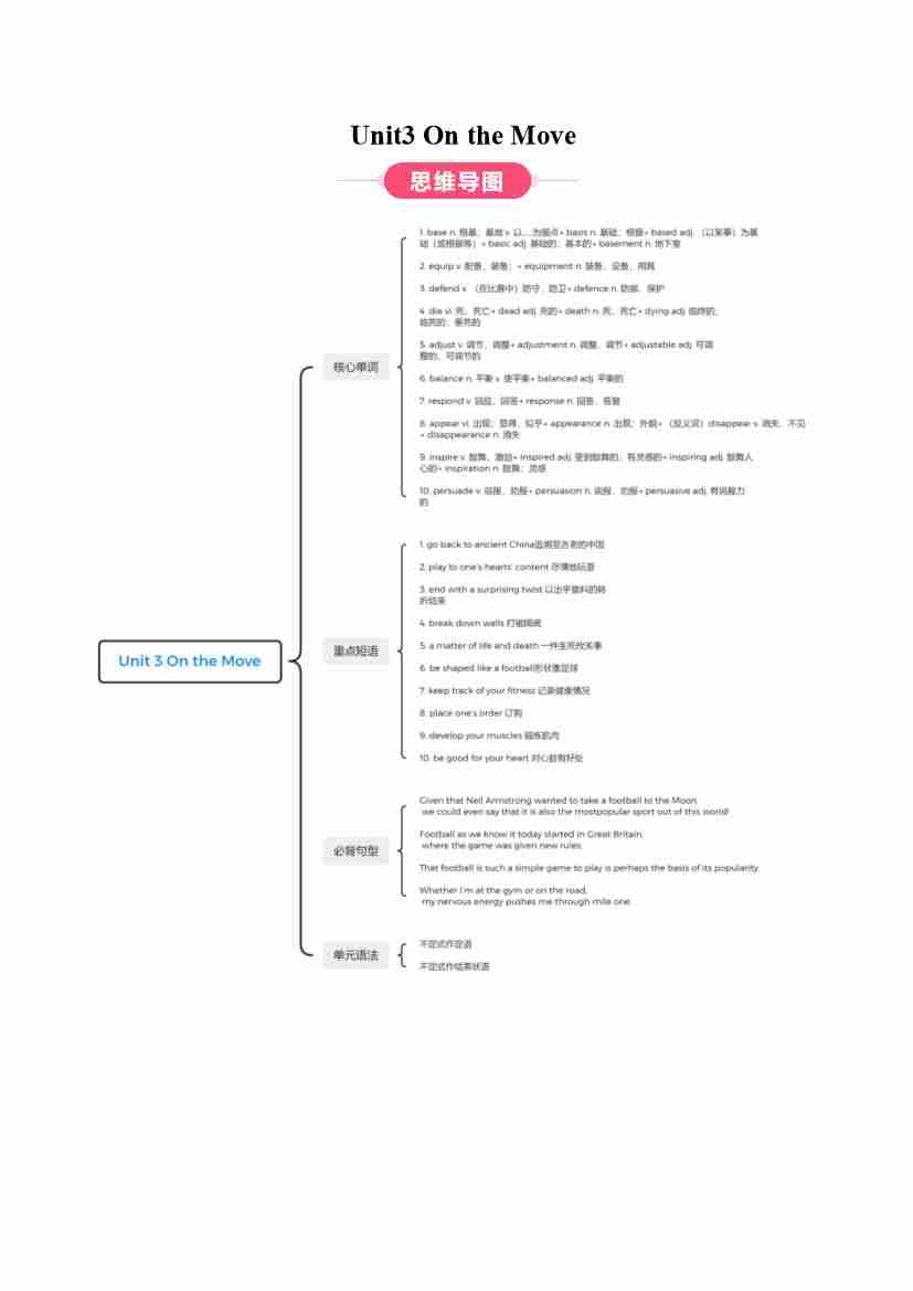 Unit 3 On the move(知识清单)(答案版)