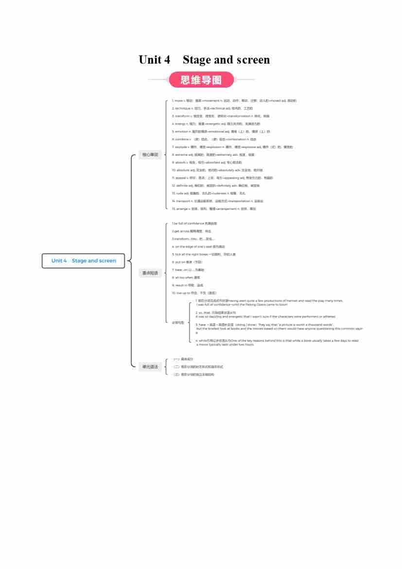 Unit 4 Stage and screen(知识清单)(答案版)