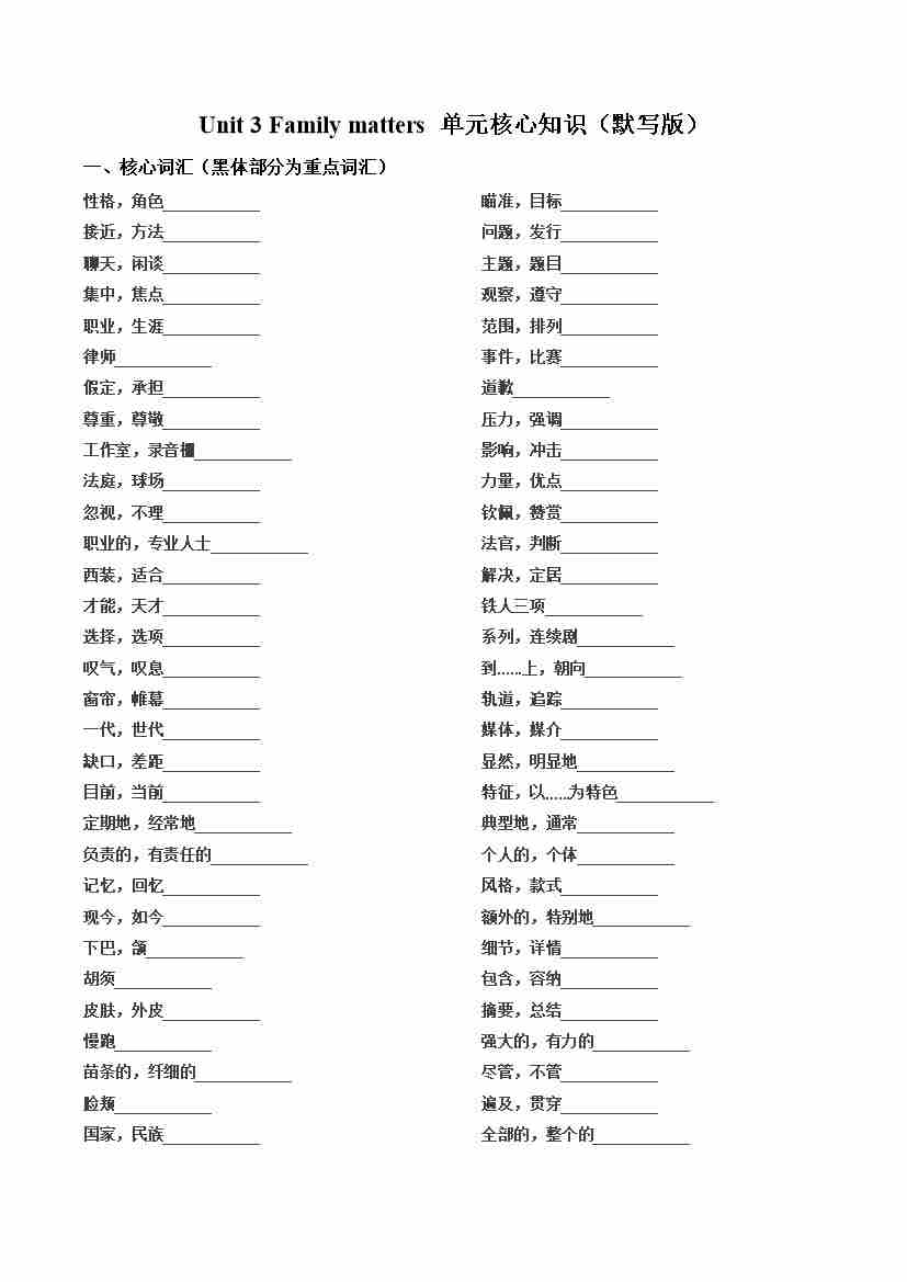 Unit3 Family matters (单元核心知识)(默写版)