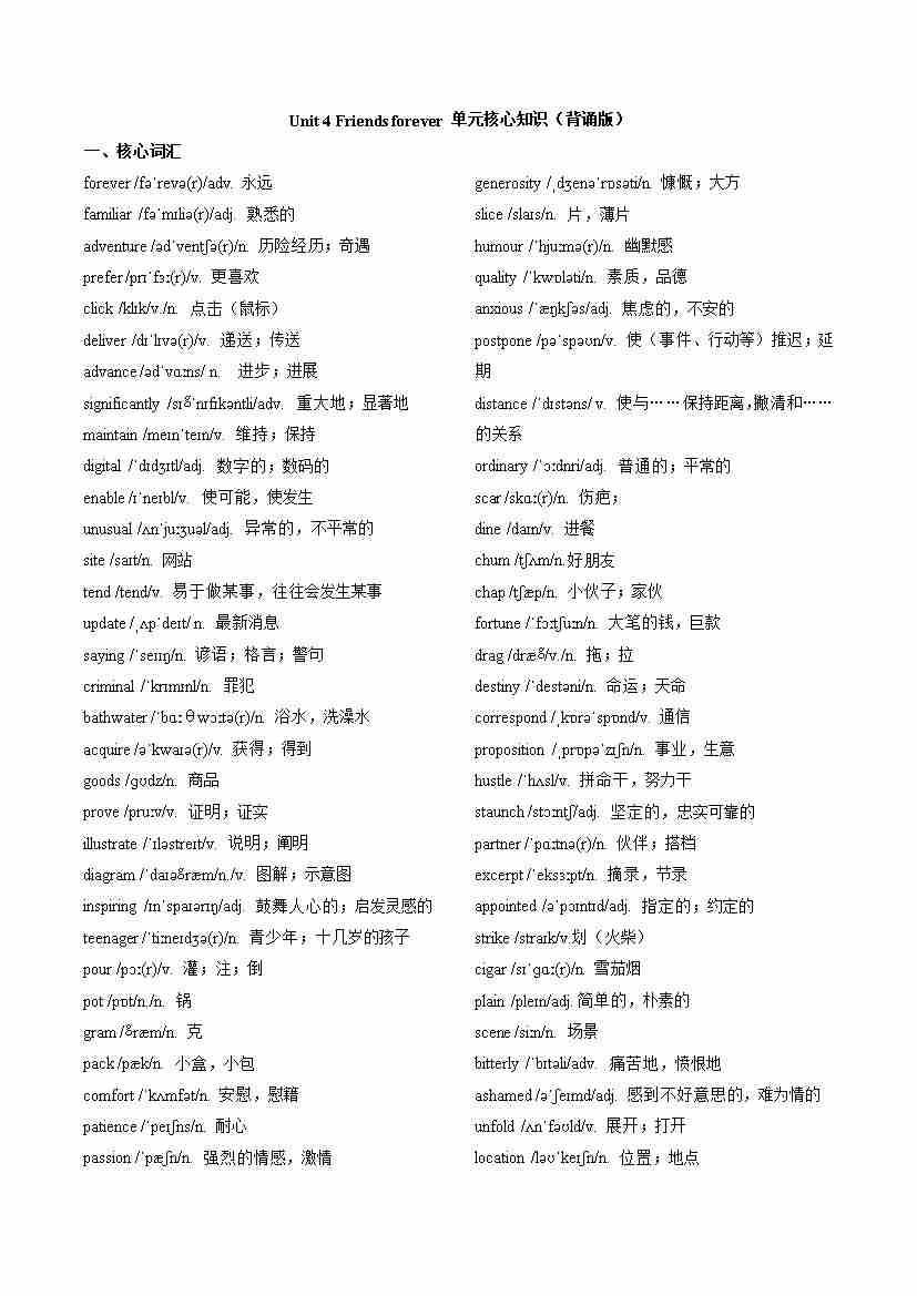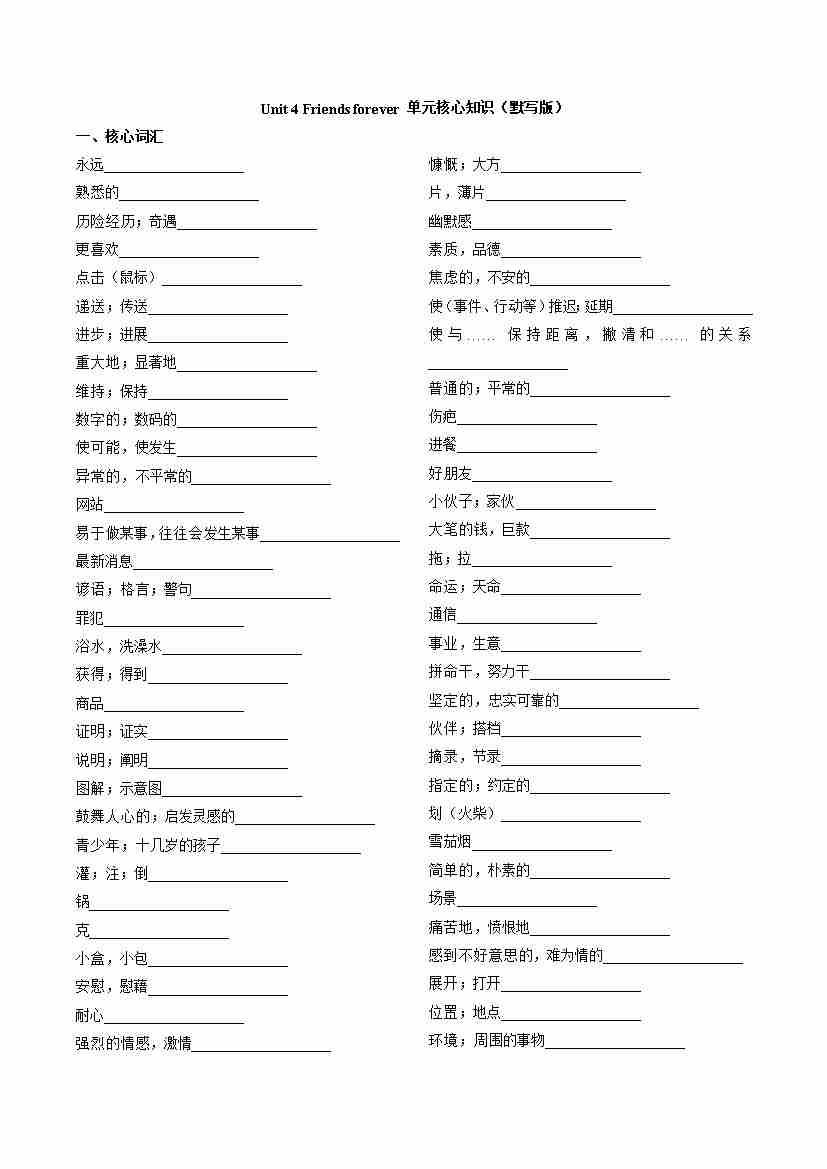 Unit4 Friends forever (单元核心知识)(默写版)