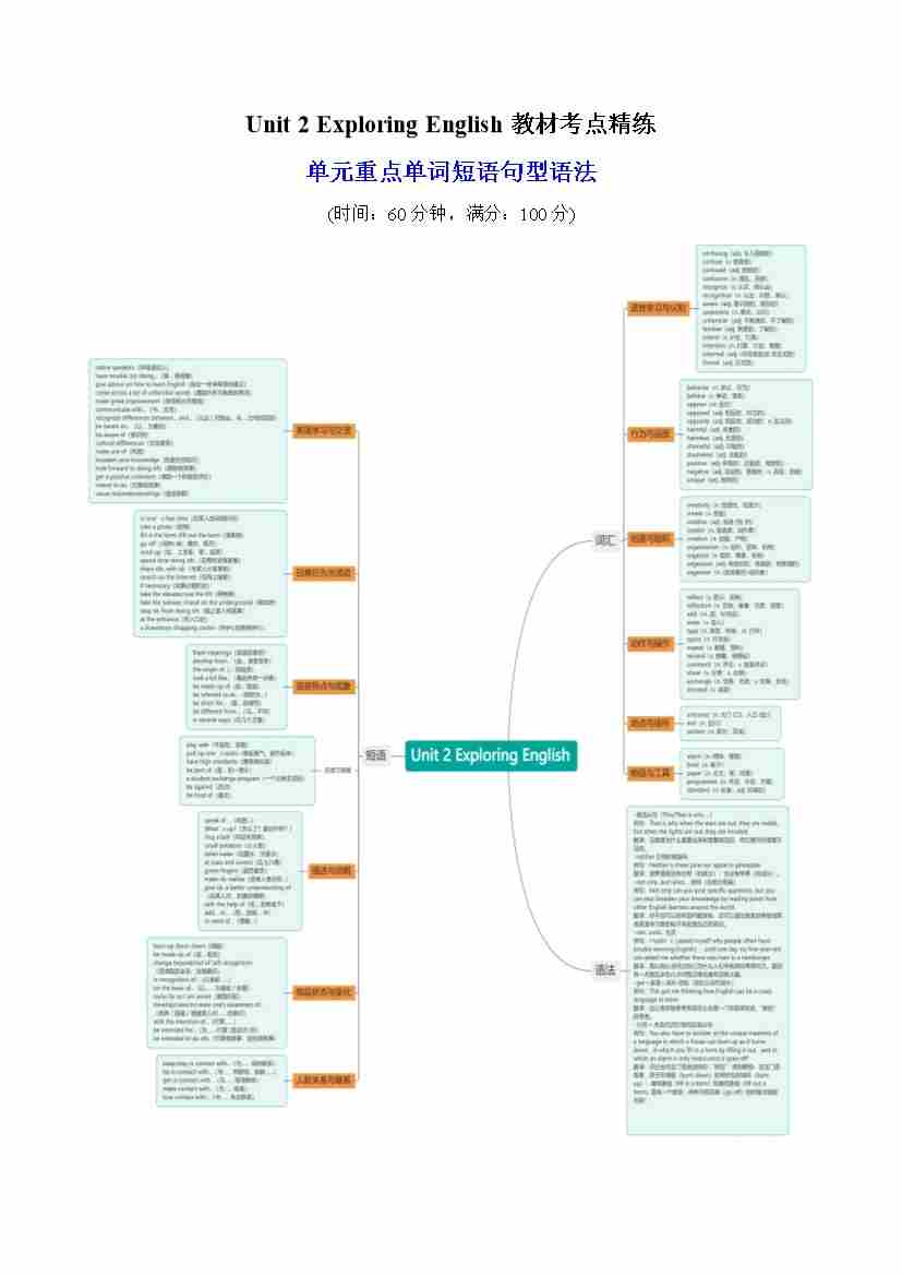 Unit 2 Exploring English 单词短语句型语法(教材考点精练)(教师版)