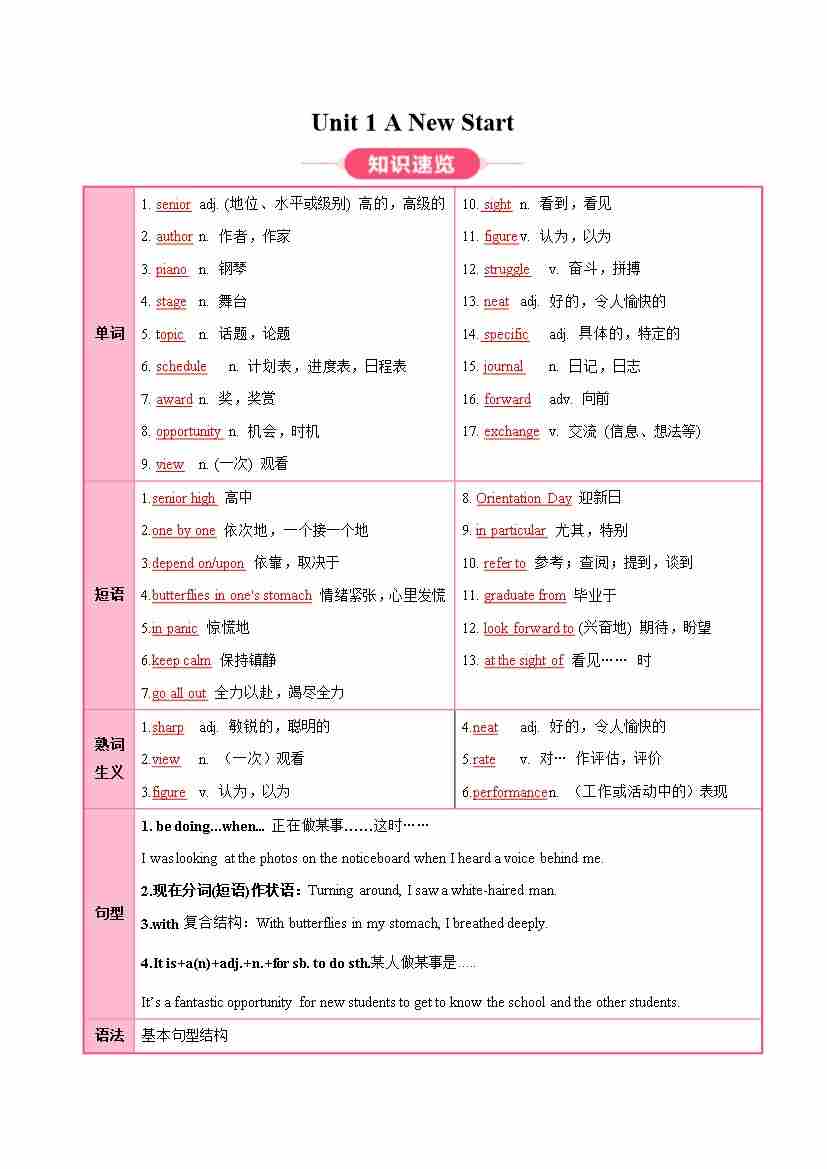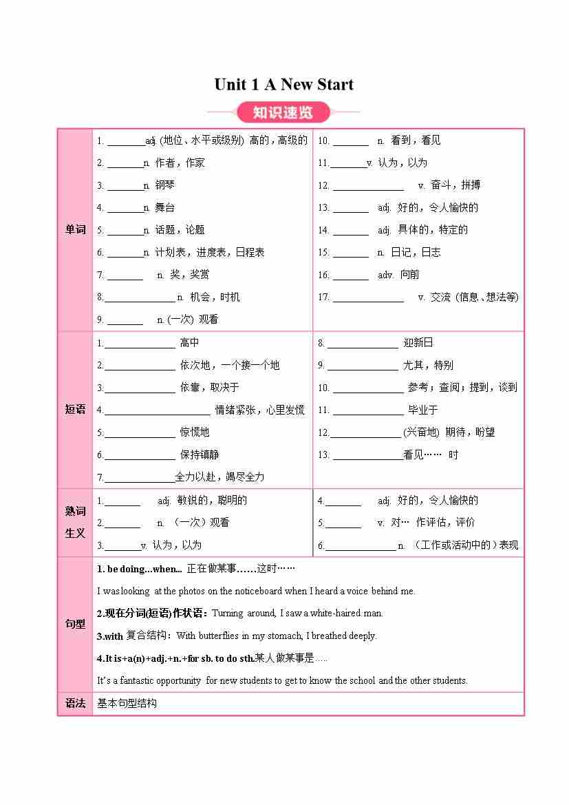 高考英语一轮复习Unit1Anewstart课后练习外研版必修第一册