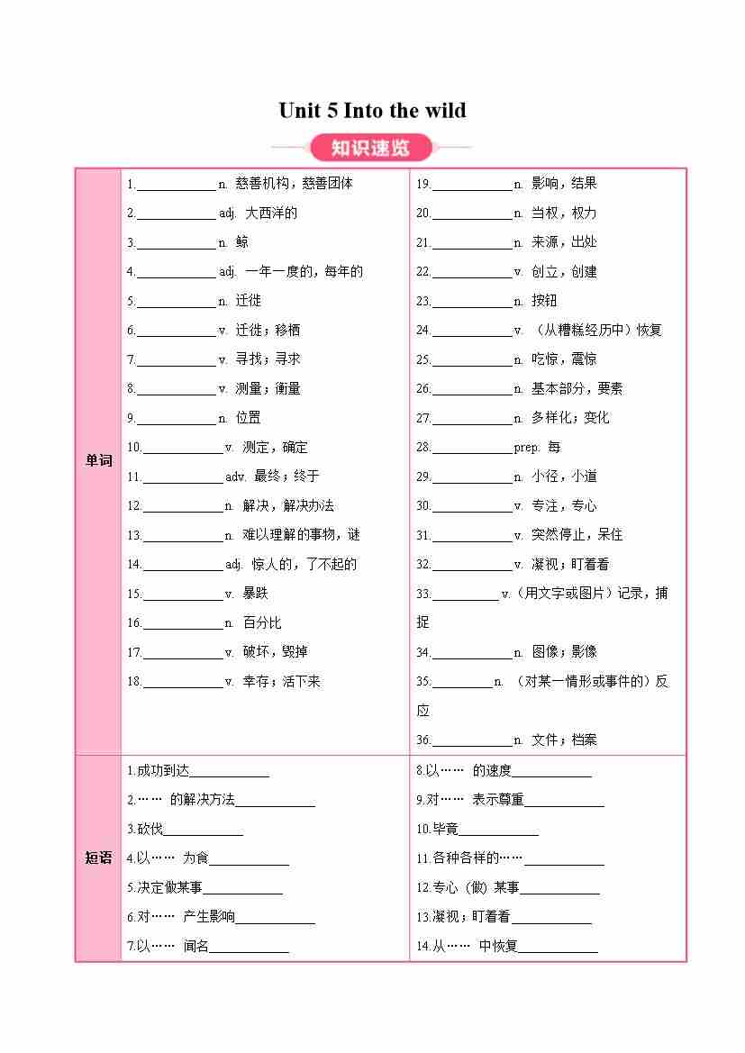 高考英语一轮复习Unit5Intothewild课后练习外研版必修第一册