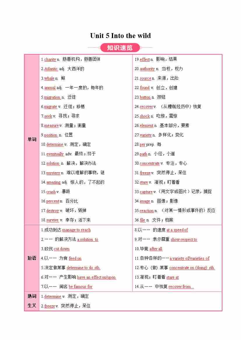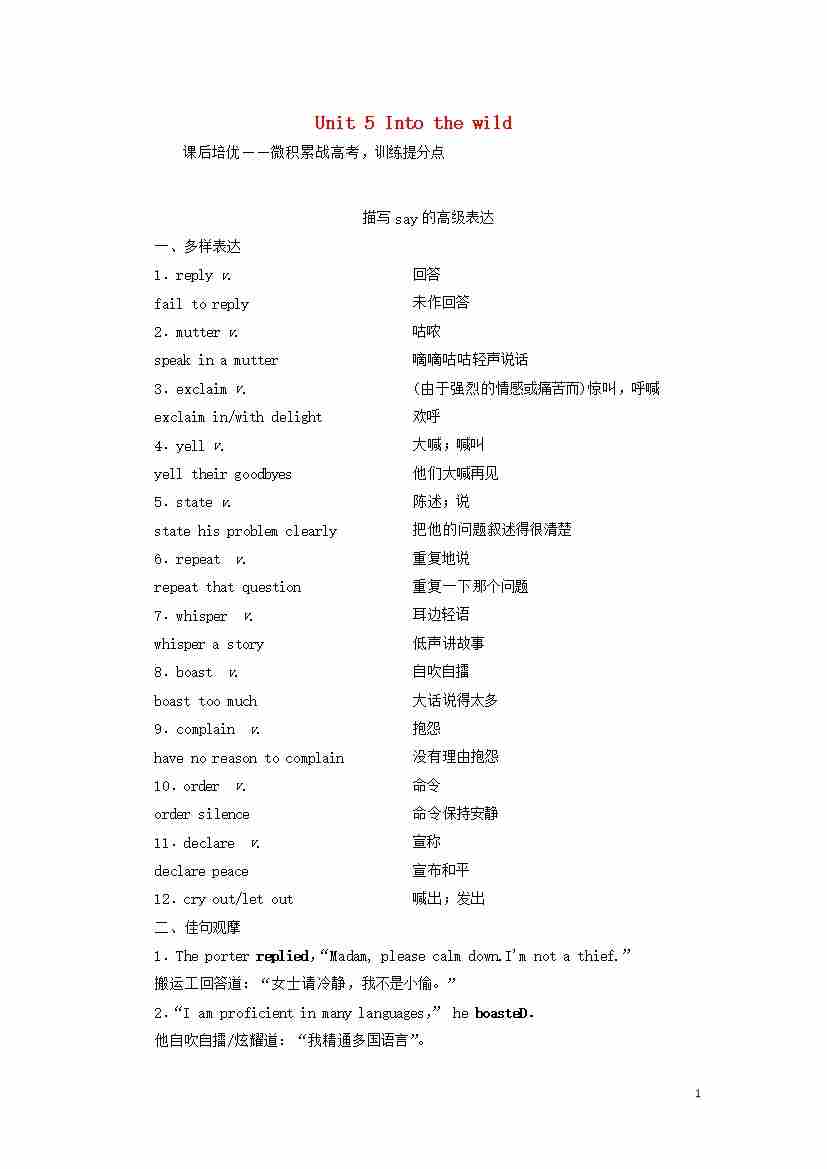 高考英语一轮复习Unit5Intothewild课后练习含解析外研版必修第一册