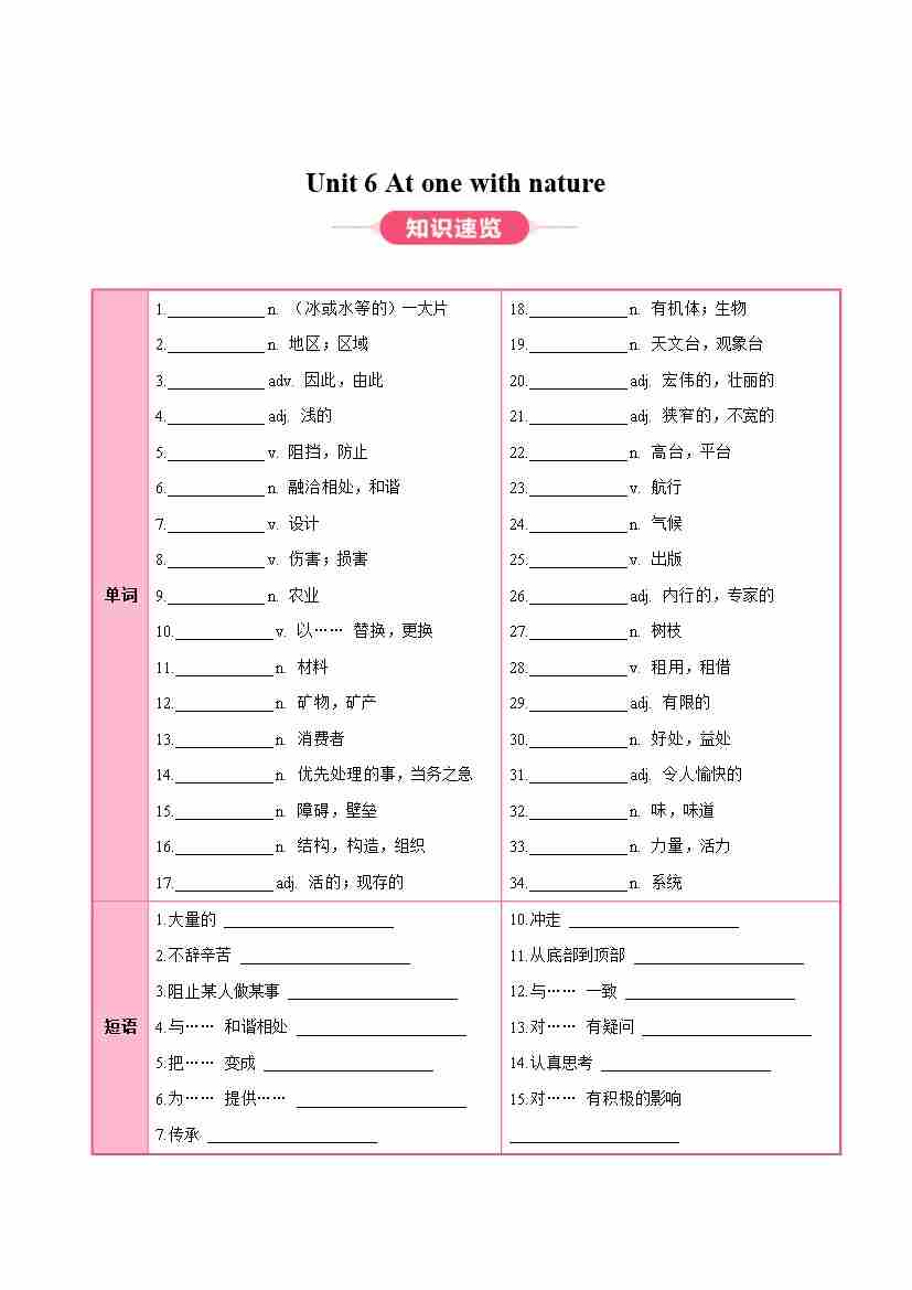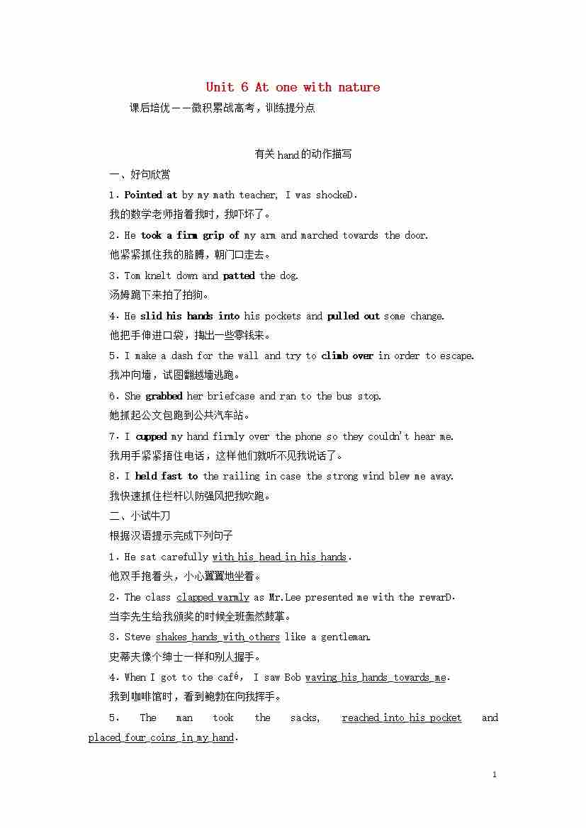 高考英语一轮复习Unit6Atonewithnature课后练习外研版必修第一册