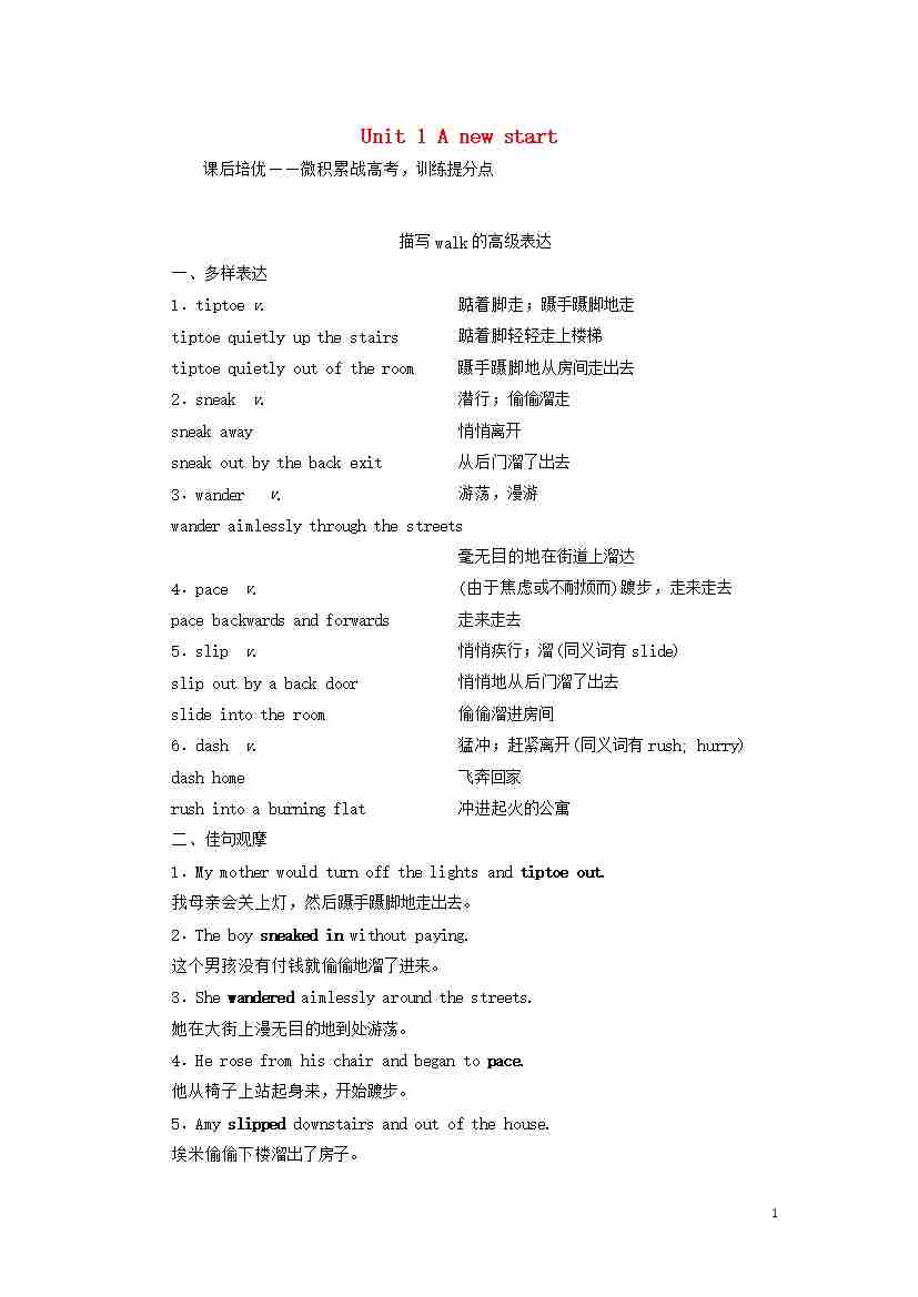 高考英语一轮复习Unit1Anewstart课后练习含解析外研版必修第一册
