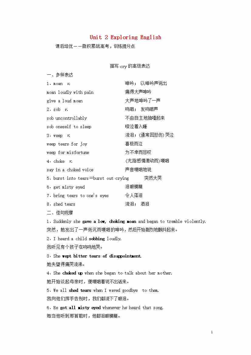 高考英语一轮复习Unit2ExploringEnglish课后练习外研版必修第一册