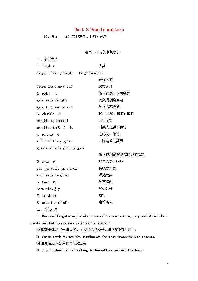 高考英语一轮复习Unit3Familymatters课后练习含解析外研版必修第一册