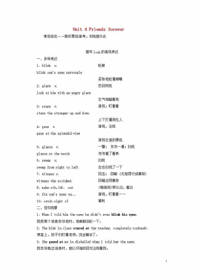 高考英语一轮复习Unit4Friendsforever课后练习外研版必修第一册