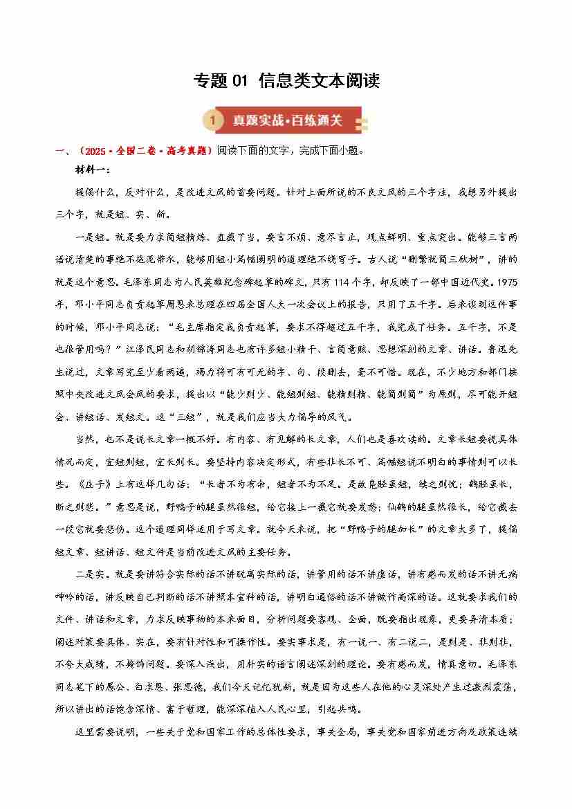 专题01 信息类文本阅读(期末专项训练)(解析版)选修一
