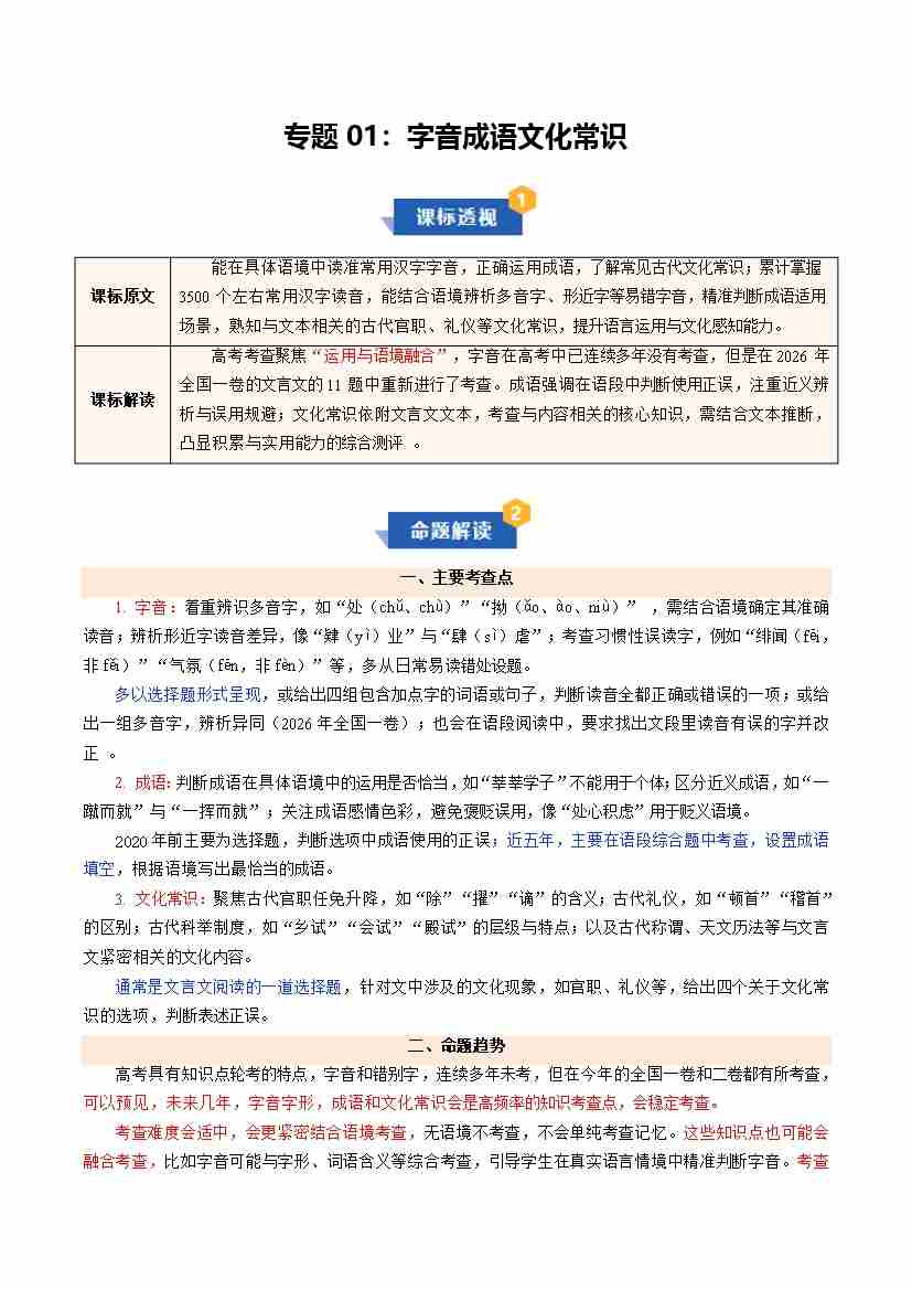 专题01 字音成语文化常识(期末复习知识清单)选修