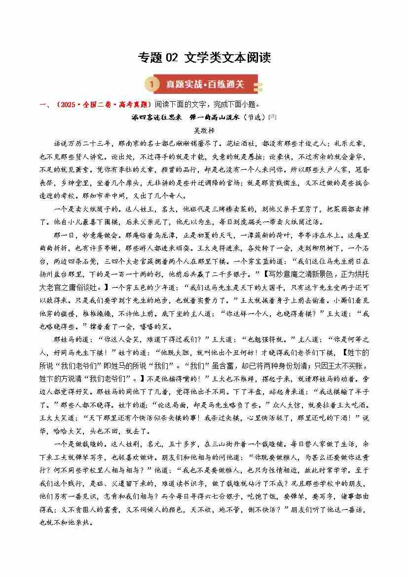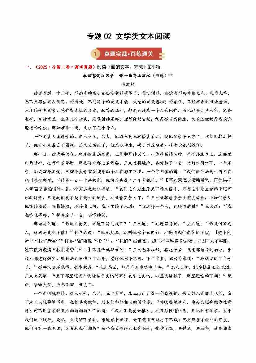 专题02 文学类文本阅读(期末专项训练)(原卷版)选修一