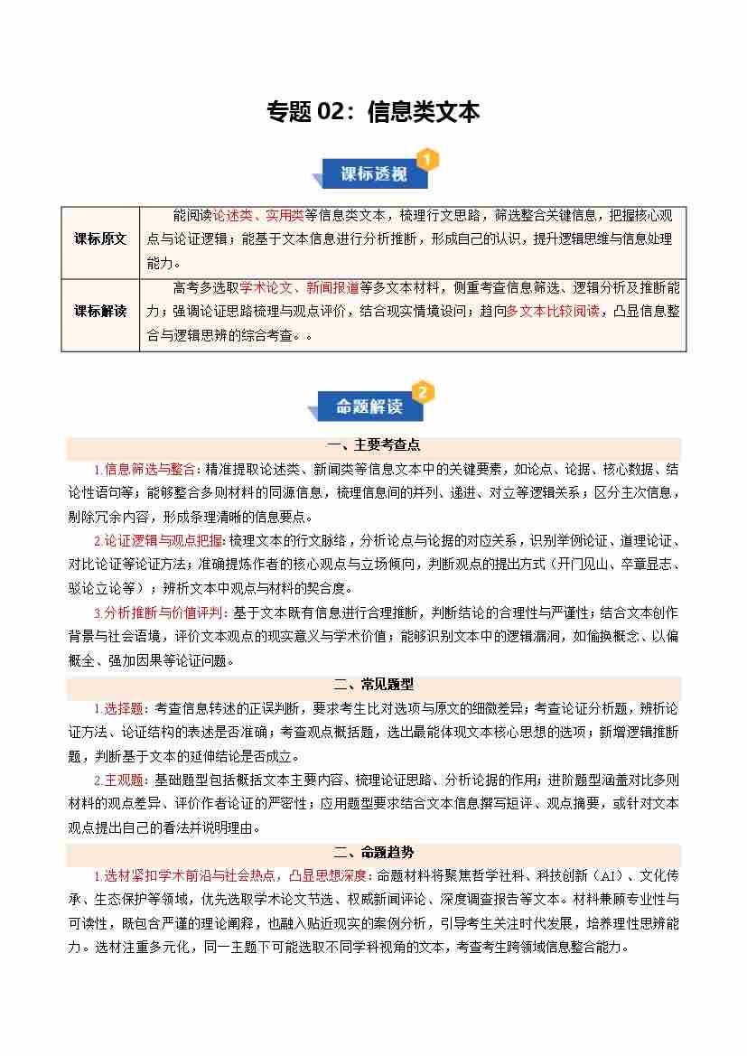 专题03 信息类文本阅读(期末复习知识清单)选修