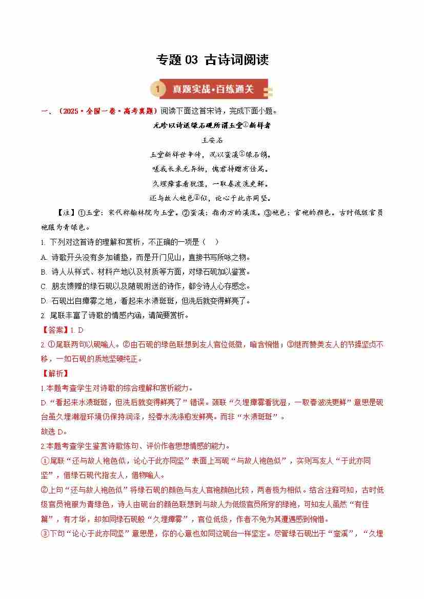 专题03 古诗词阅读(期末专项训练)(解析版)选修一