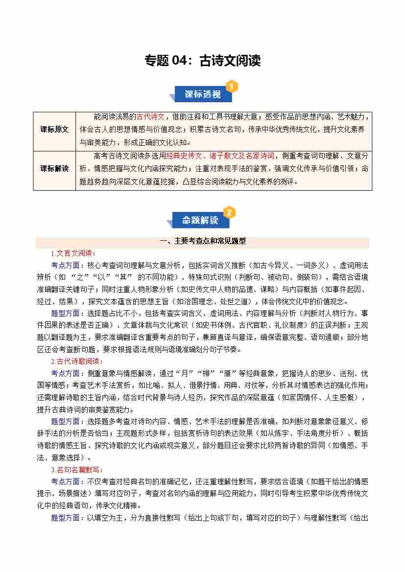 专题04 古诗文阅读知识清单(期末知识清单)选修