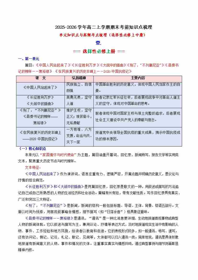 考前必背:选择性必修上册、中册课本知识梳理(期末复习知识清单)