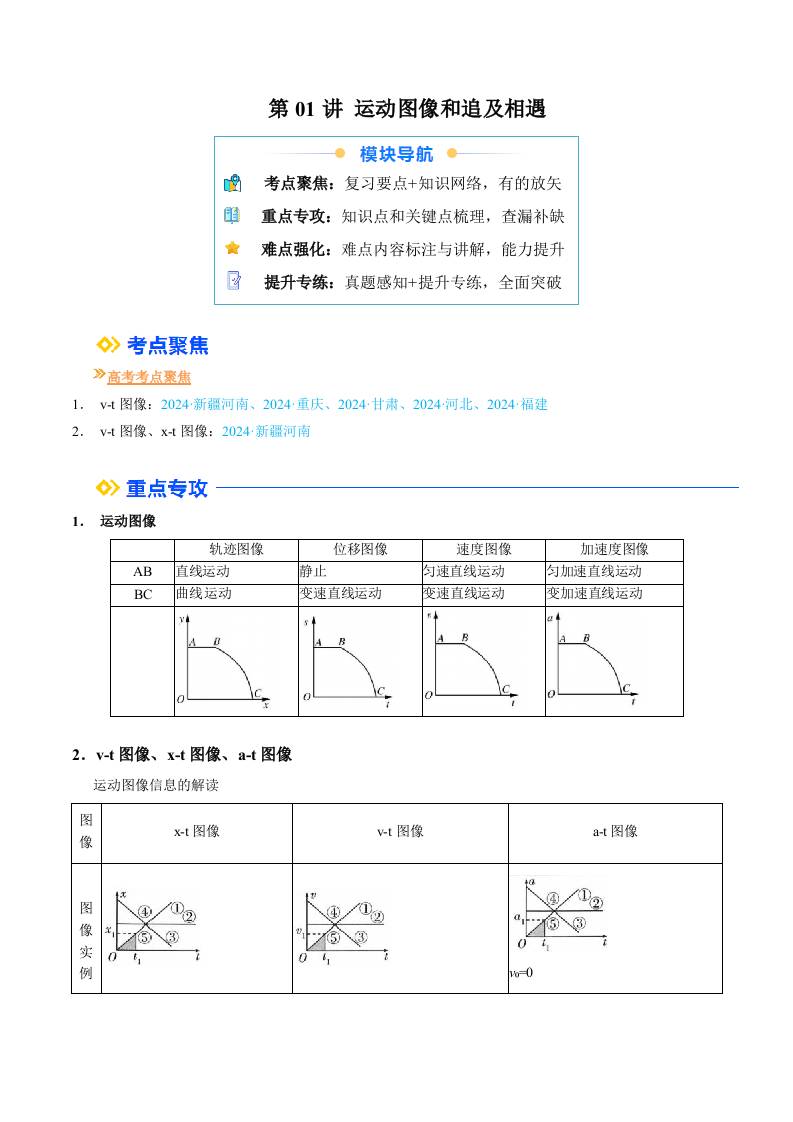 ①寒假复习-第01讲 运动图像和追及相遇(学生版)2025年高一物理寒假衔接讲练 (人教版)