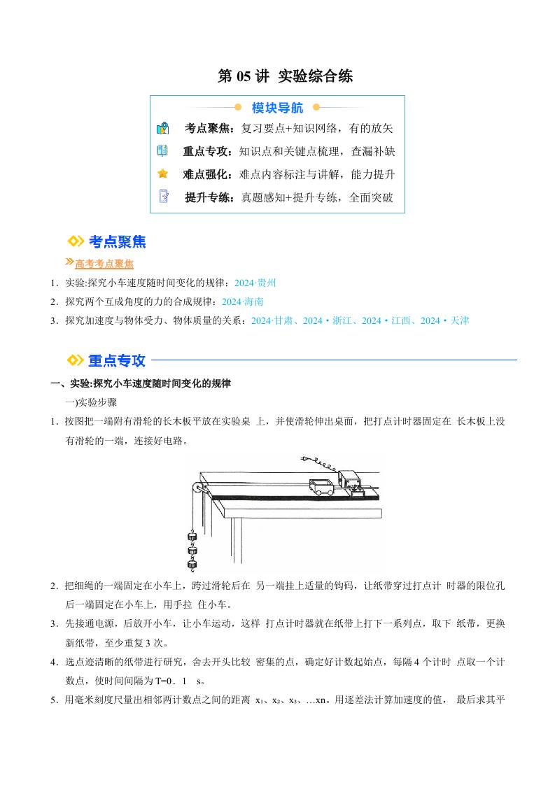 ①寒假复习-第05讲 实验综合练(教师版)2025年高一物理寒假衔接讲练 (人教版)