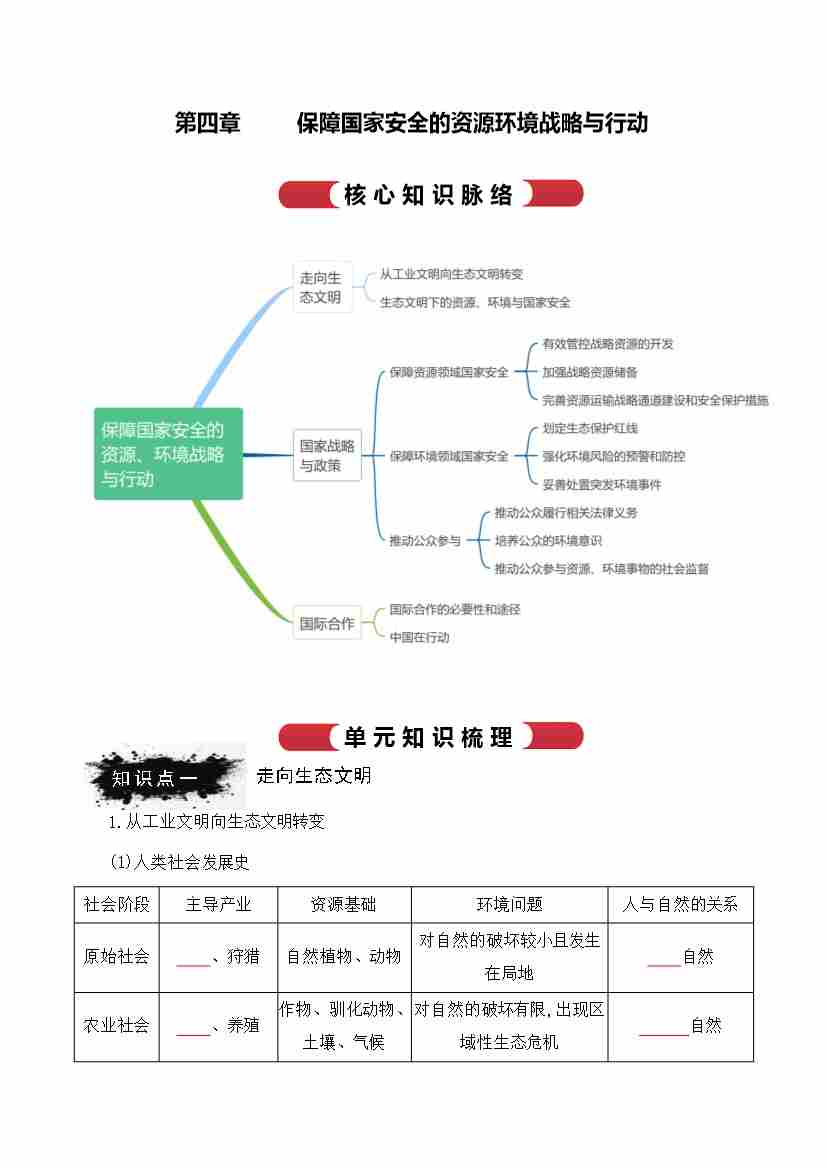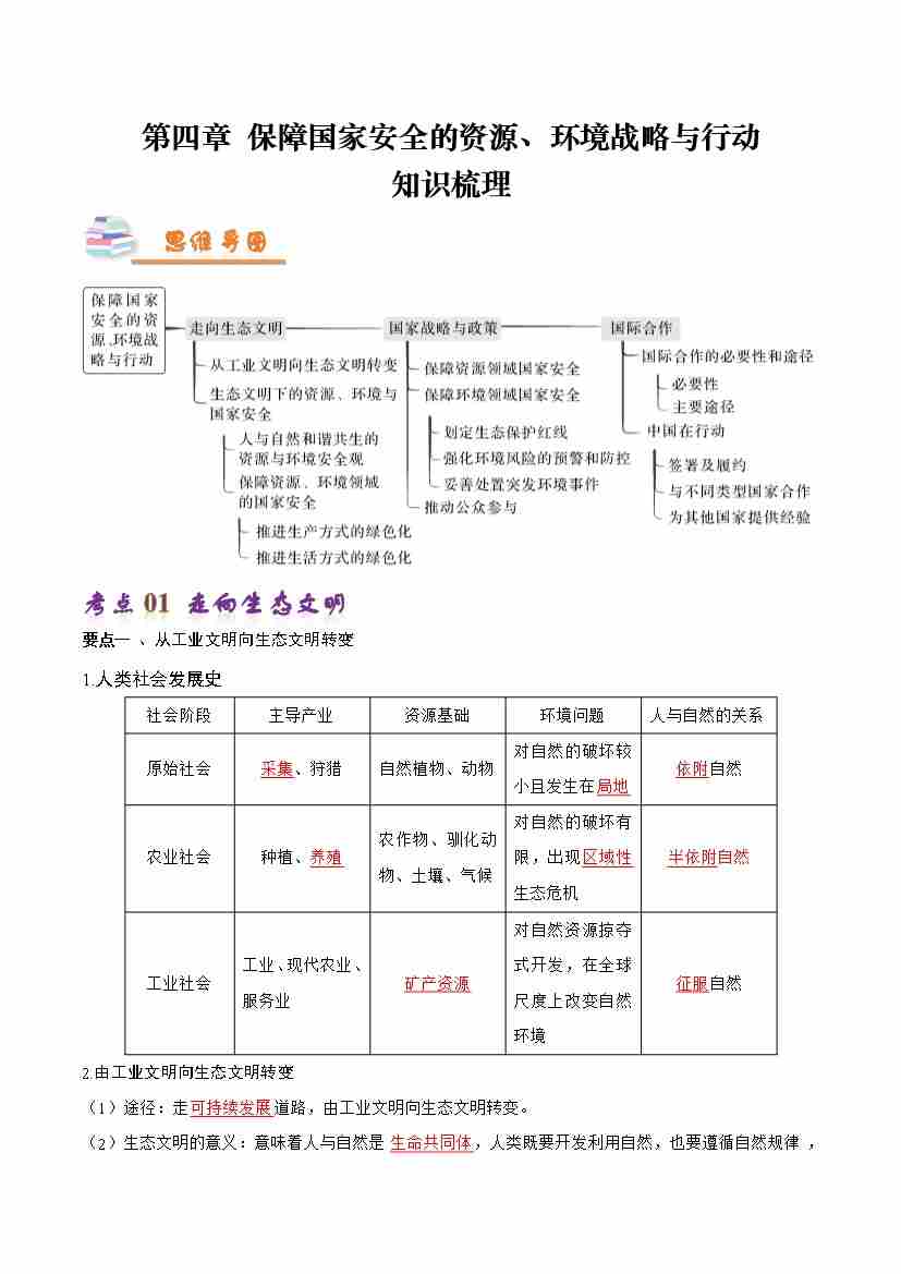 第四章 保障国家安全的资源、环境战略与行动(知识梳理)【解析版】