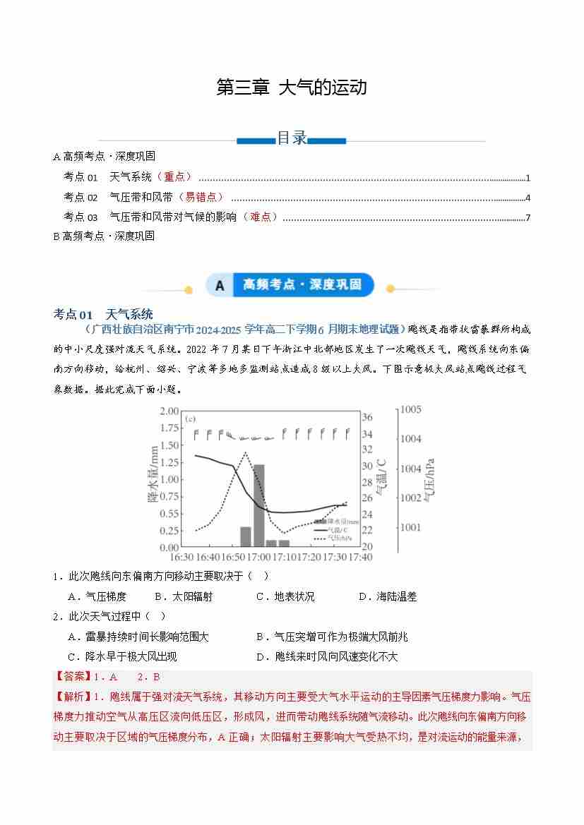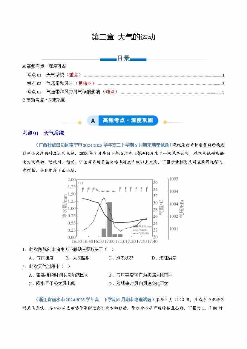 专题03 大气的运动(专项训练)(学生版)