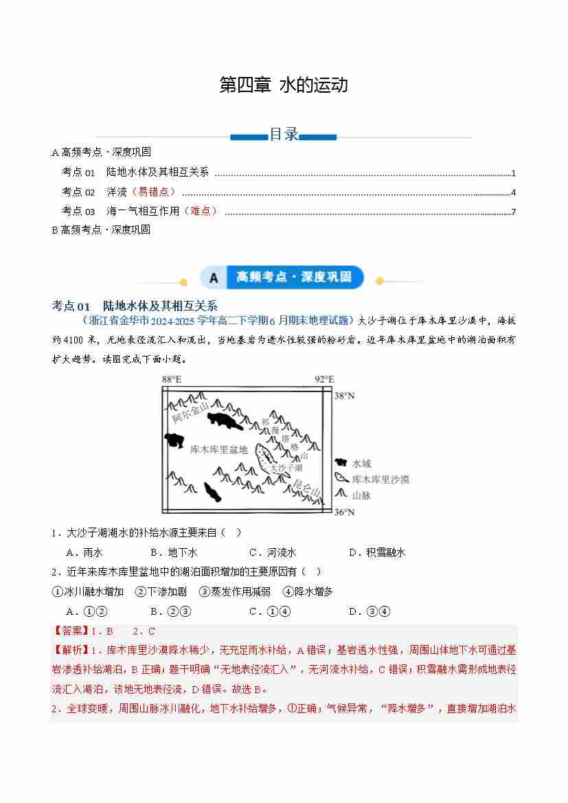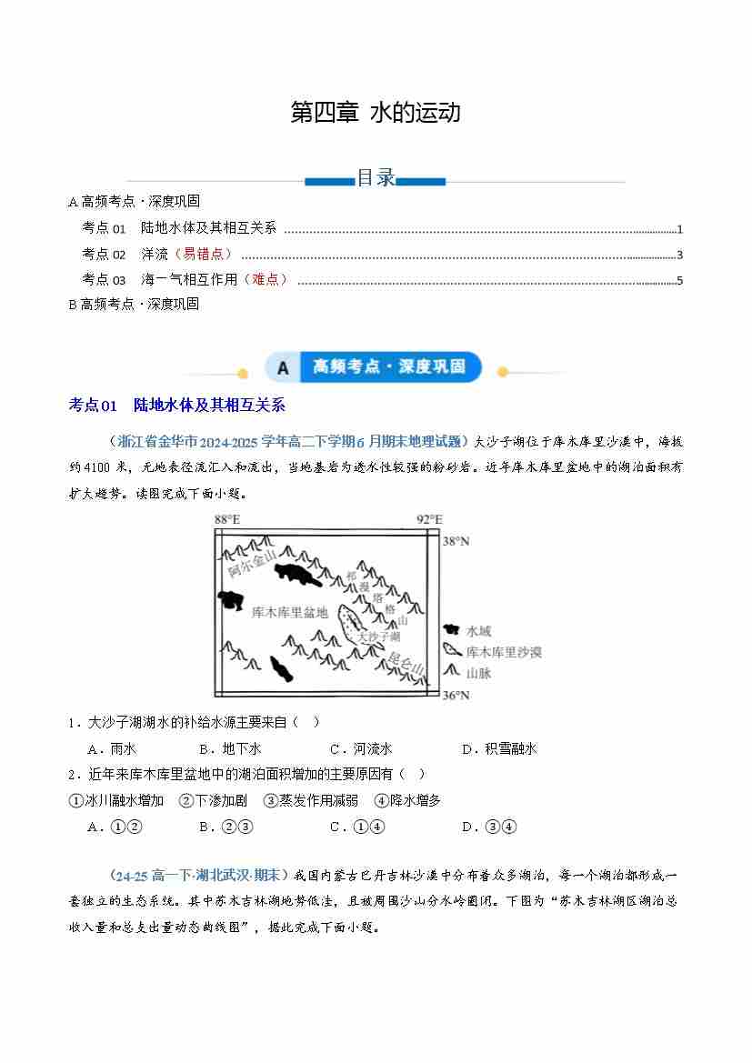 专题04 水的运动(专项训练)(学生版)