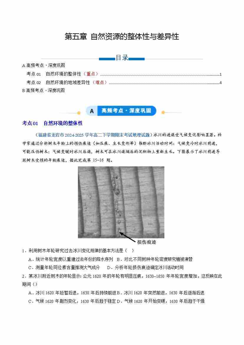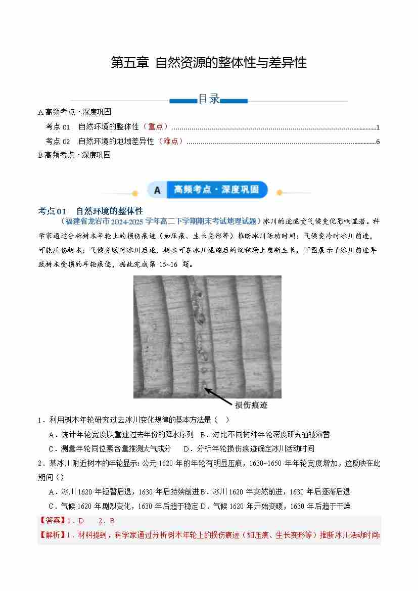 专题05 自然资源的整体性与差异性(专项训练)(学生版)