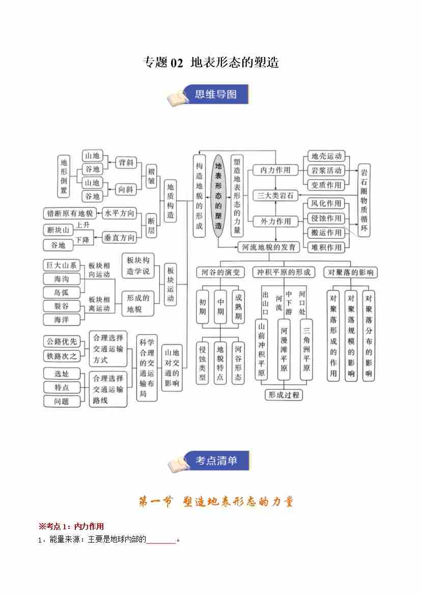 选修一地理专题02 地表形态的塑造(期末复习知识清单)(挖空版)