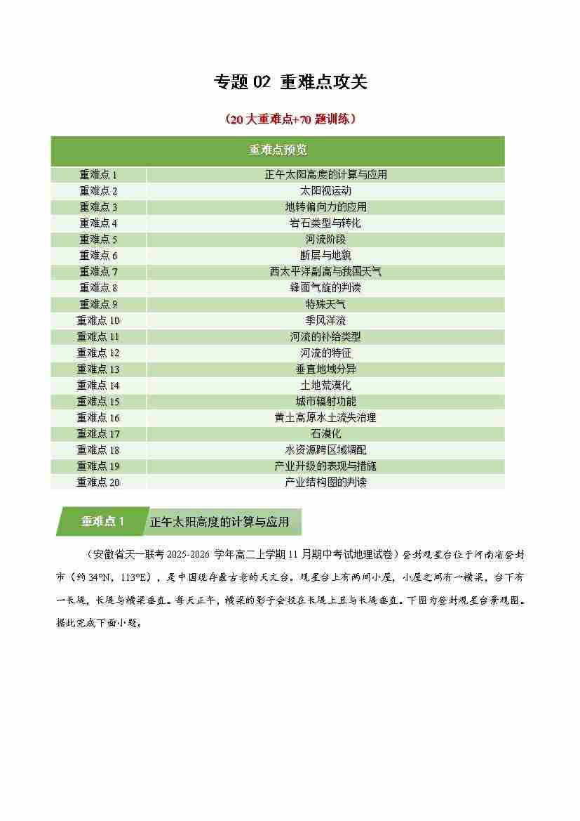 选修一地理专题02 重难点攻关(期末复习专项训练)(学生版)