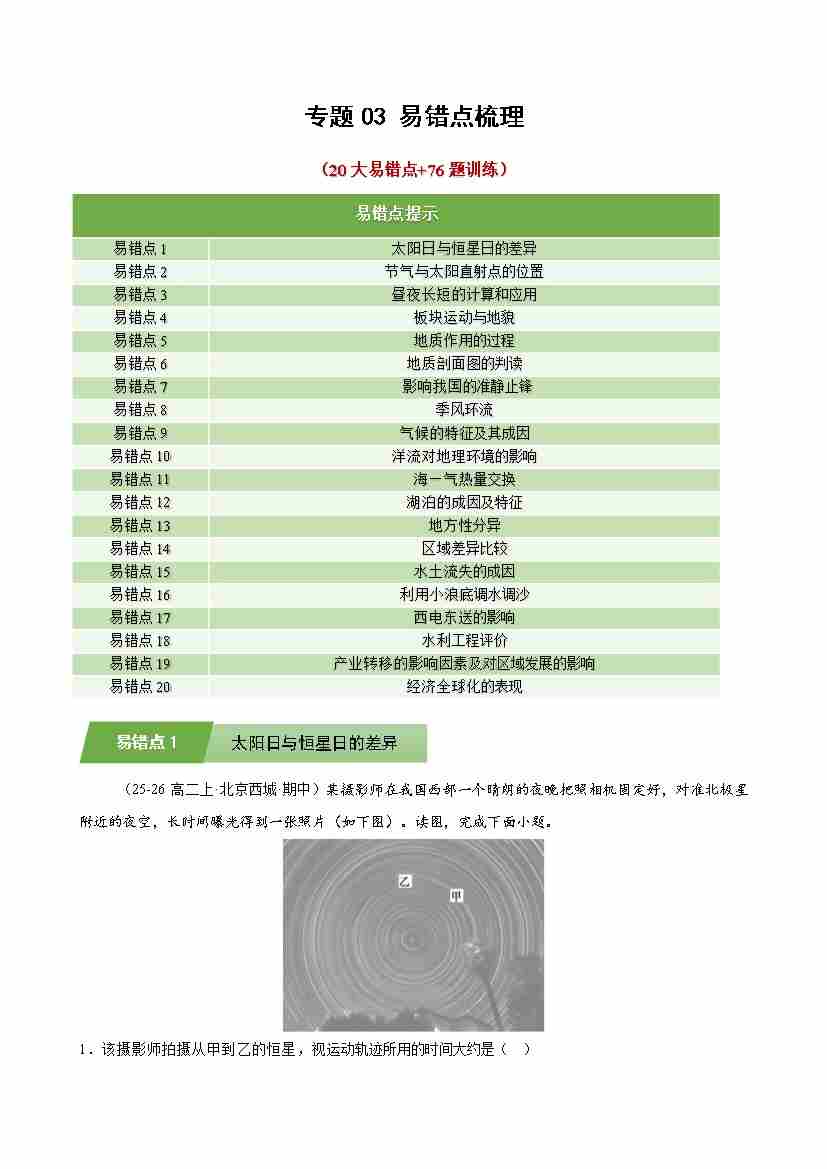 选修一地理专题03 易错点梳理(期末复习专项训练)(学生版)