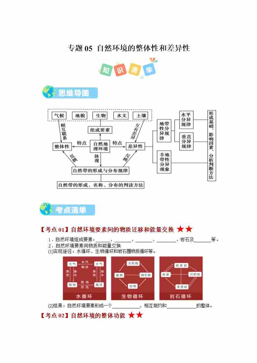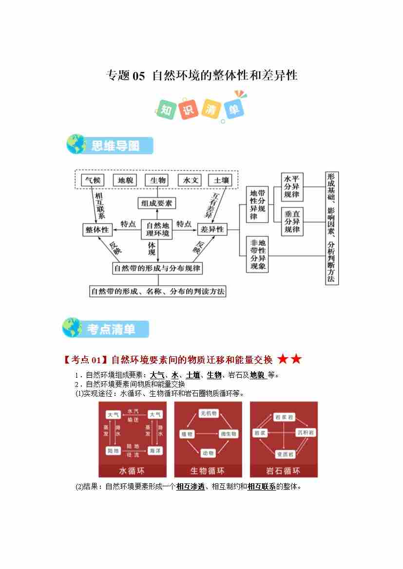 第五章 自然地理环境的整体性与差异性(期中知识清单)(学生版)