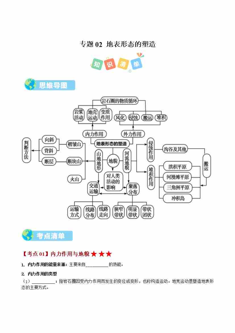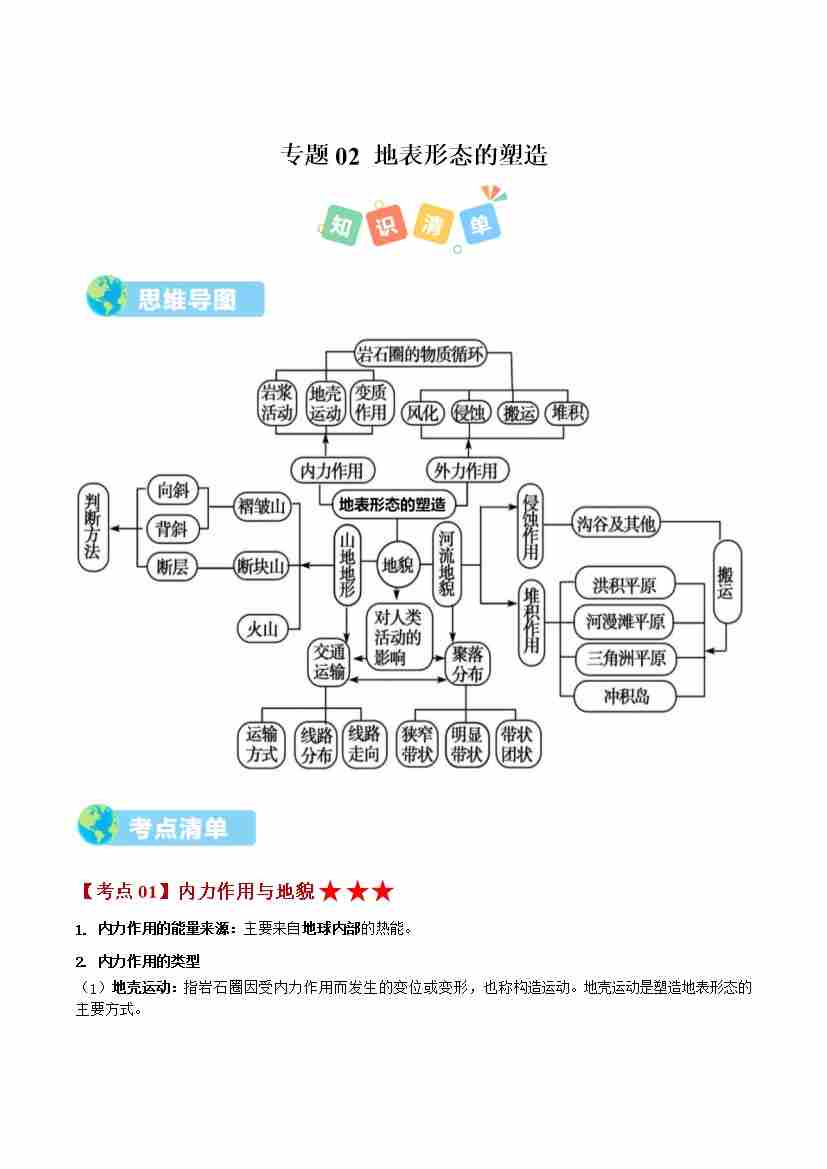 选必1 第二章 地表形态的塑造(期中知识清单)(学生版)