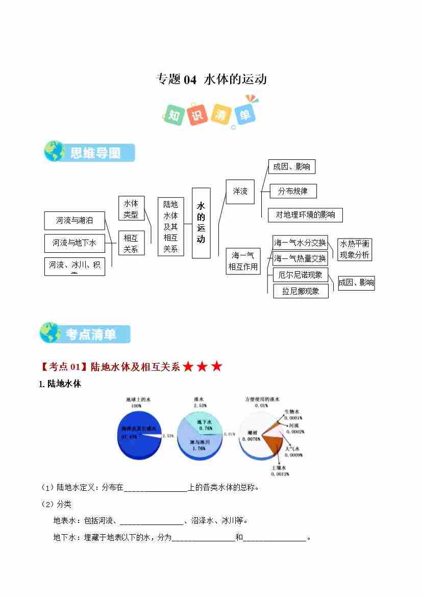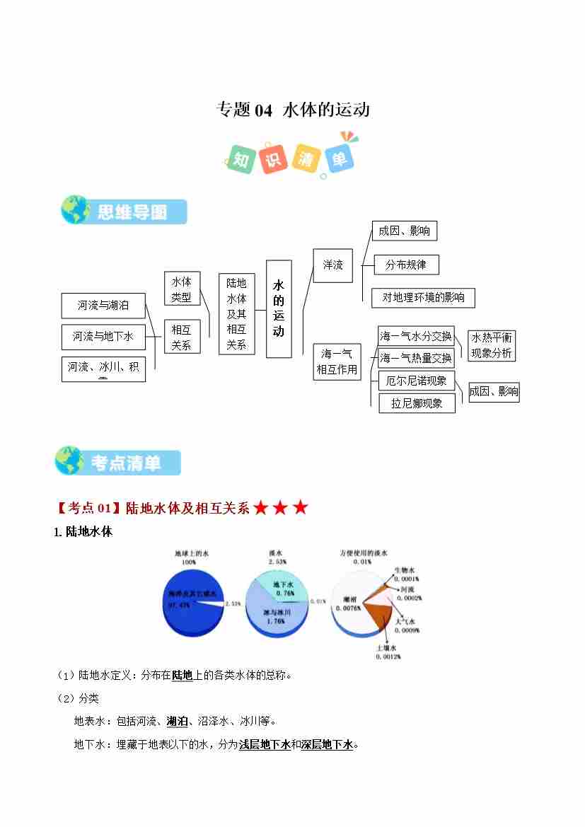 选必1 第四章 水的运动(期中知识清单)(学生版)