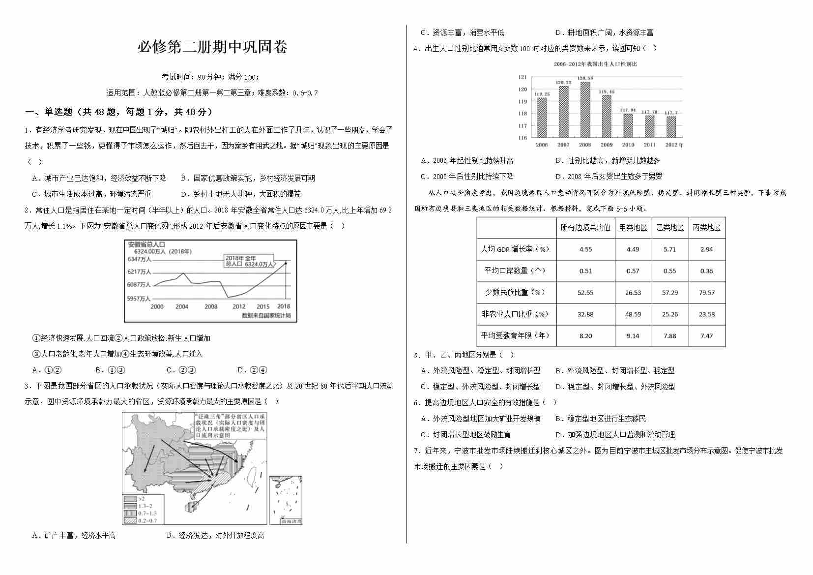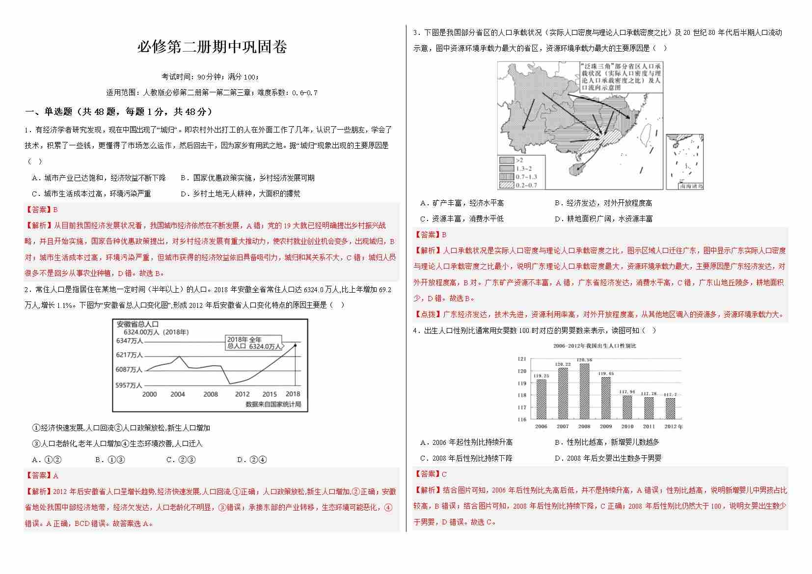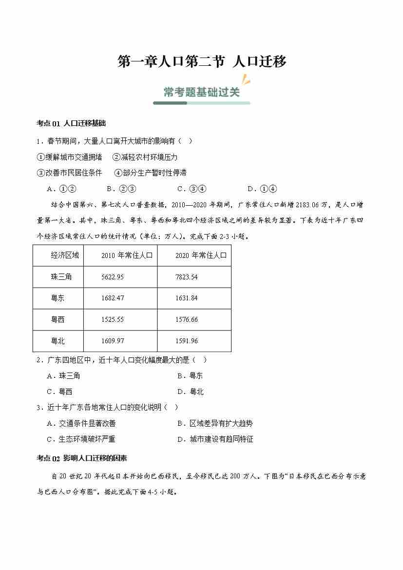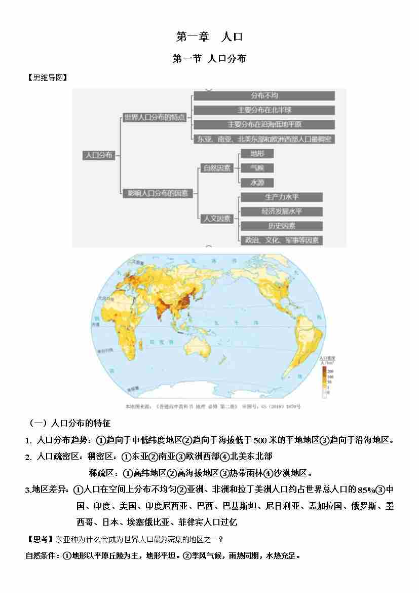 第一章 人口(核心知识梳理)-高一地理下学期期中(人教版2019必修第二册)