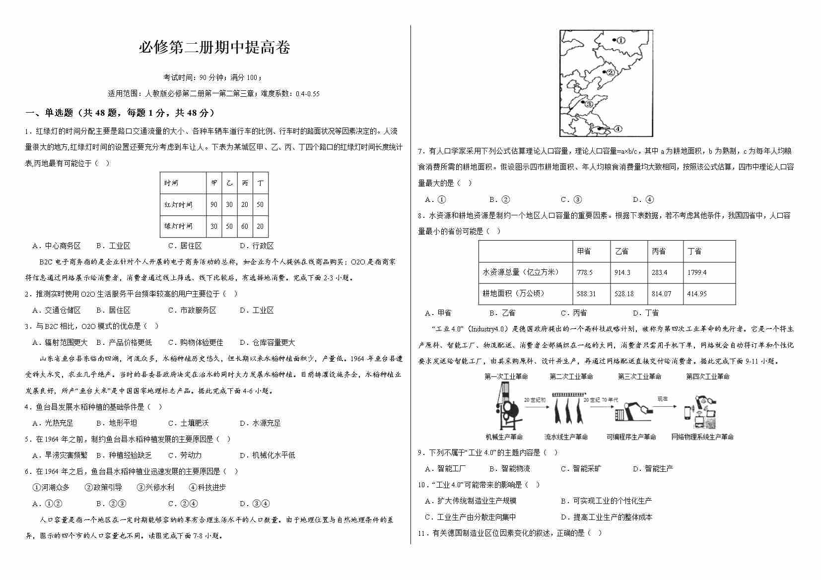 期中测试(突破提高卷)-高一地理下学期期中期(人教版2019必修第二册)(学生版)