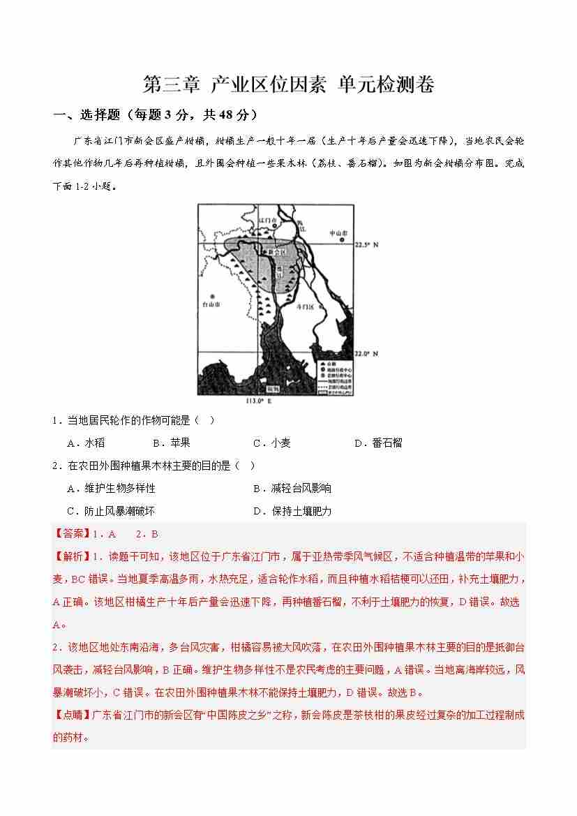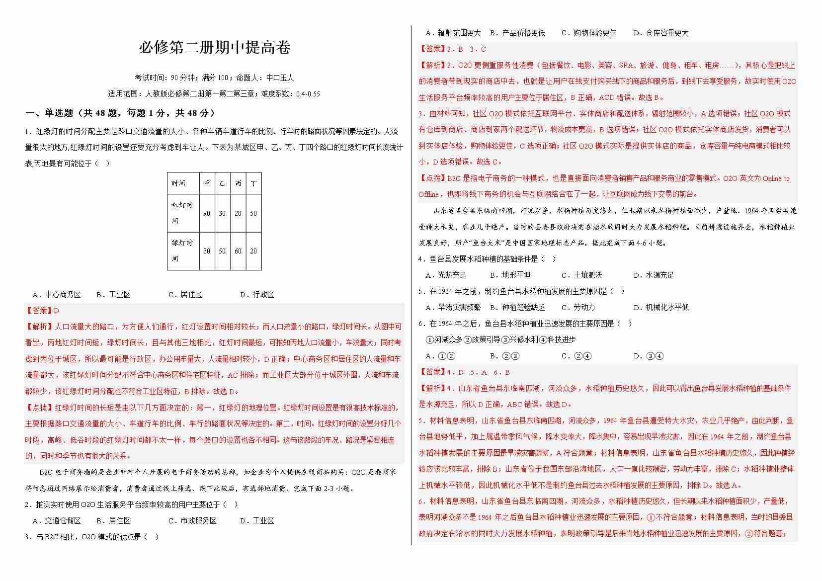 期中测试(突破提高卷)-高一地理下学期期中期(人教版2019必修第二册)(教师版)