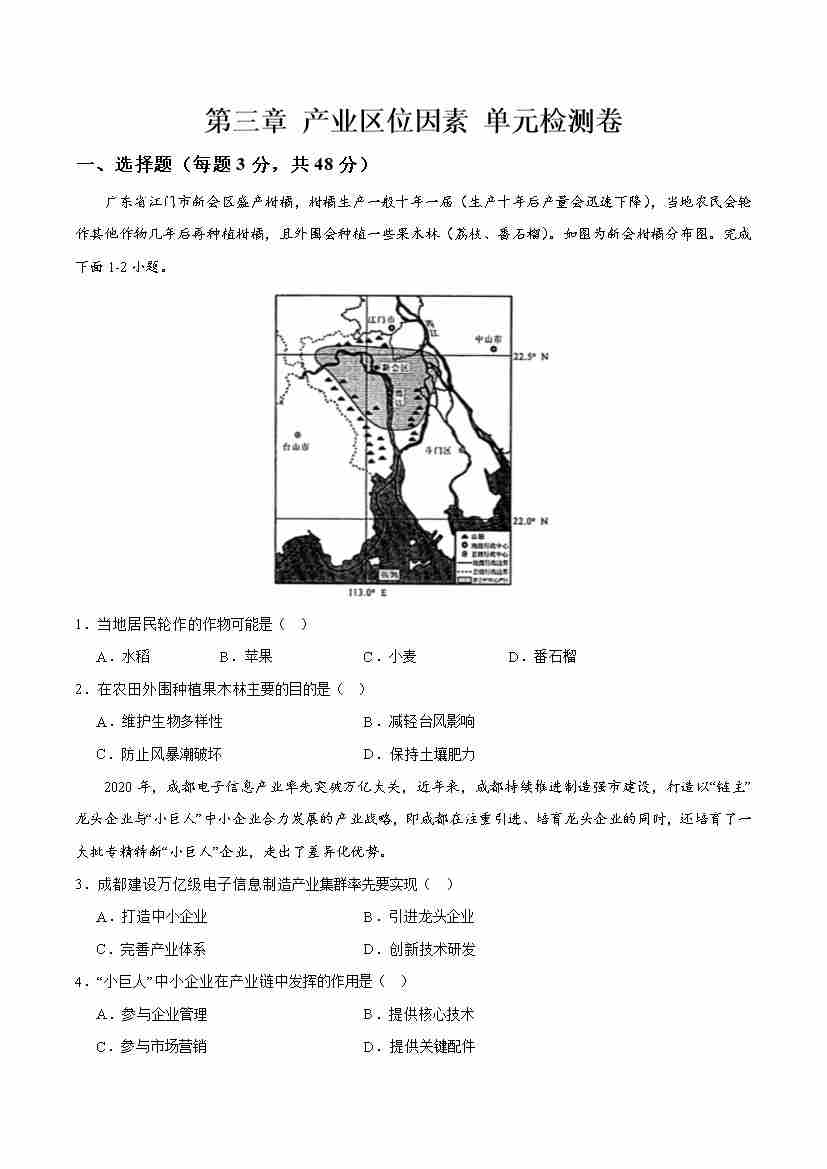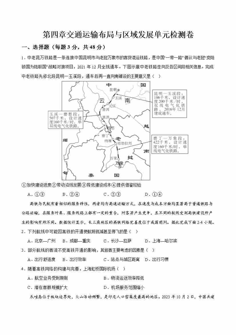 第四章交通运输布局与区域发展综合检测卷(原卷版)