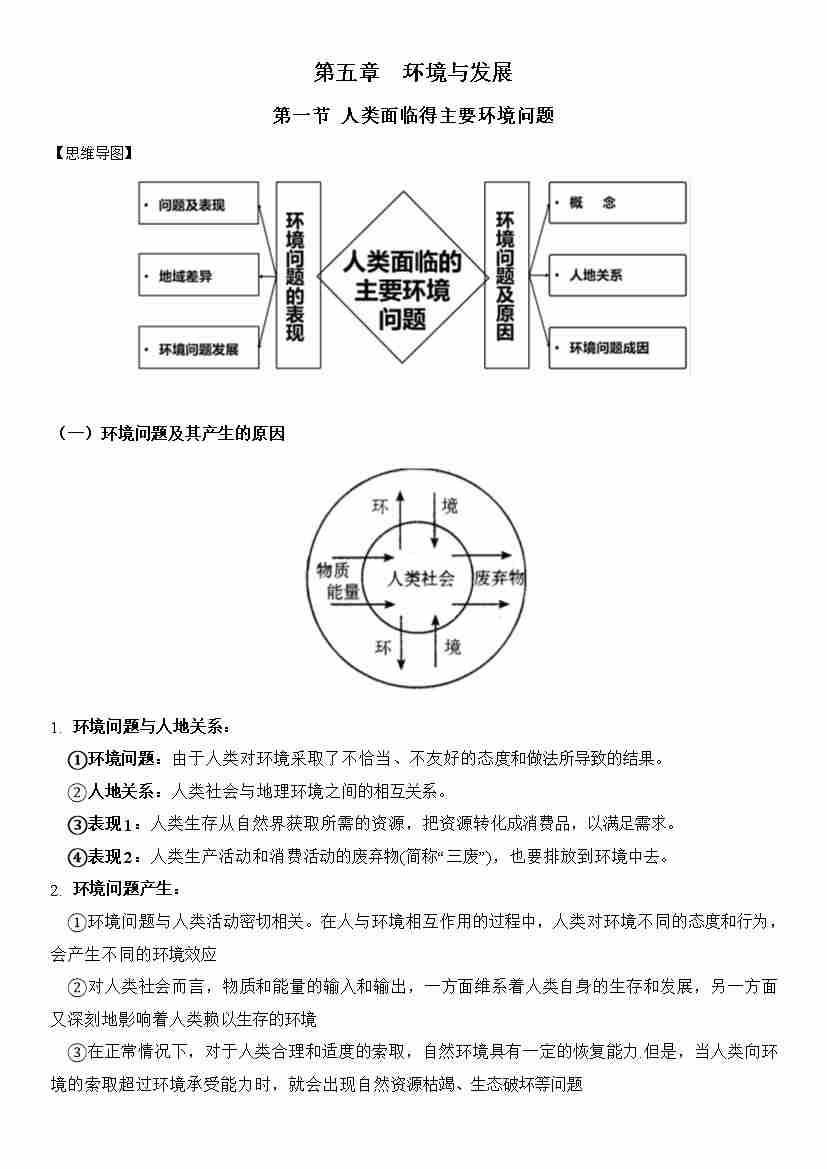 第五章 环境与发展(核心知识梳理)-高一地理下学期期中(人教版2019必修第二册)