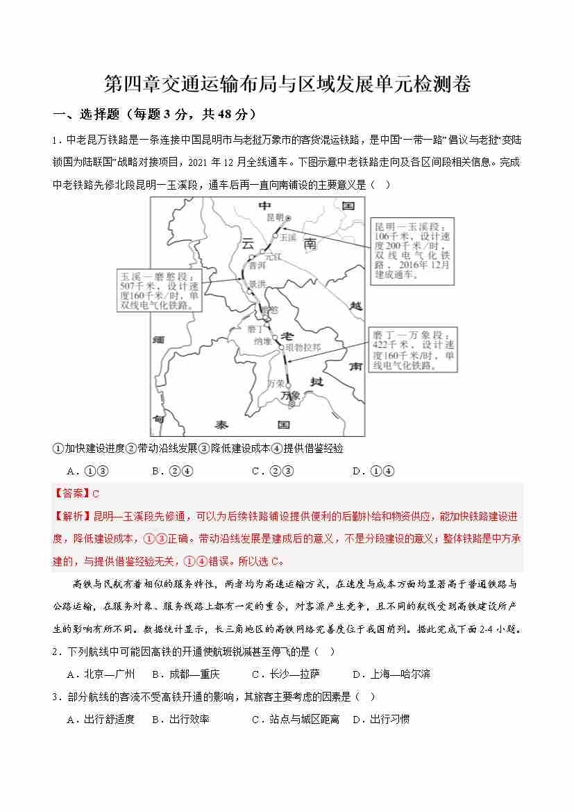 第四章交通运输布局与区域发展综合检测卷(解析版)