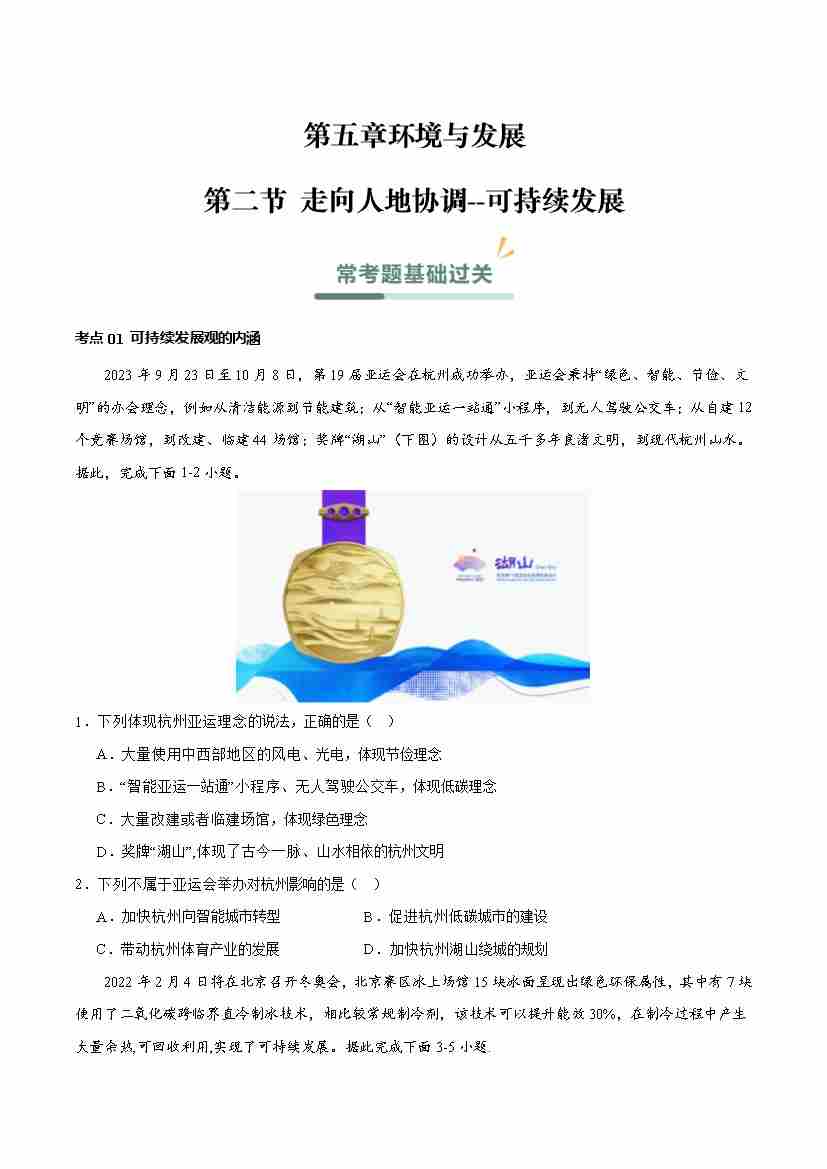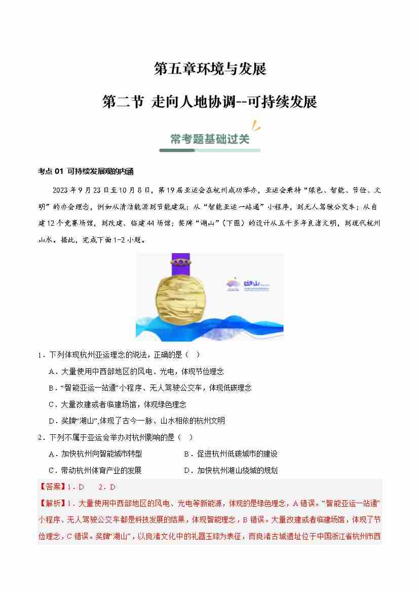 5.2走向人地协调--可持续发展(分层作业)(解析版)