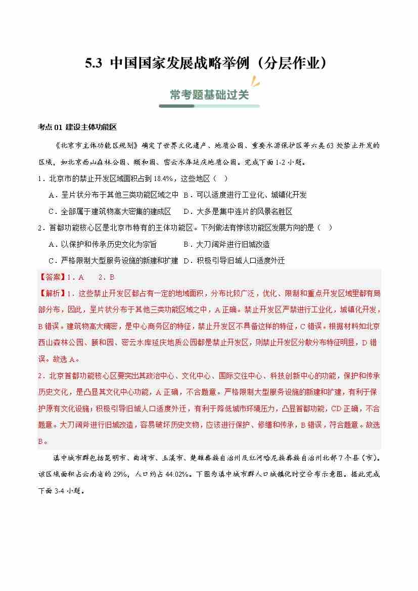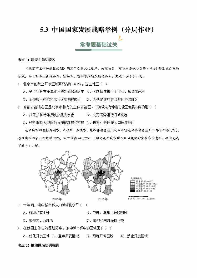 5.3 中国国家发展战略举例(分层作业)(解析版)