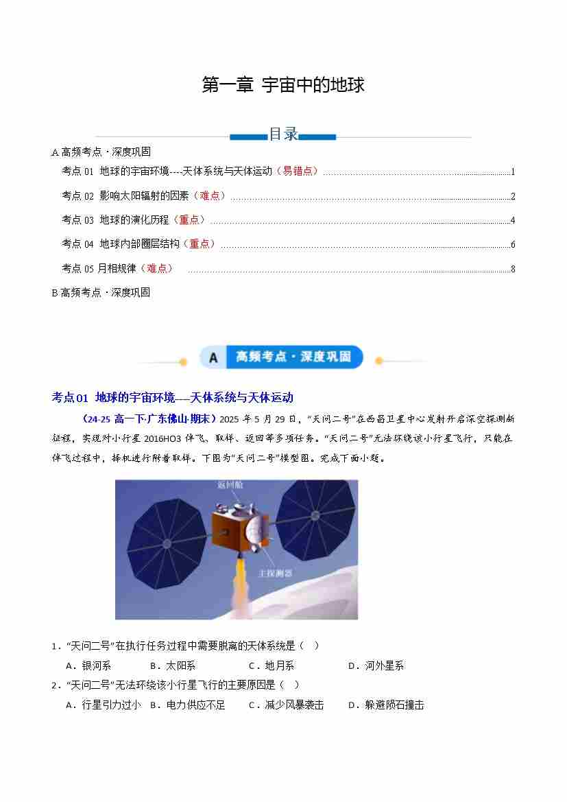 专题01 宇宙中的地球(专项训练)(学生版)