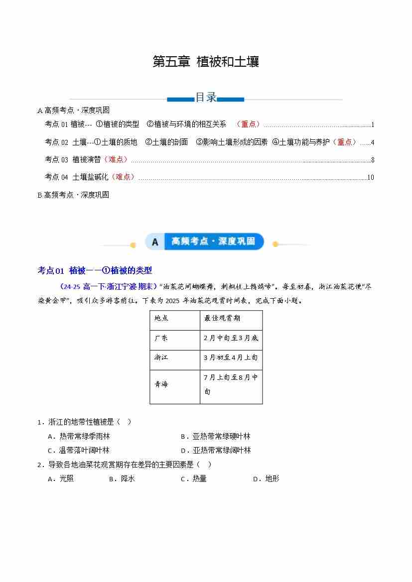 专题05 植被和土壤(专项训练)(学生版)