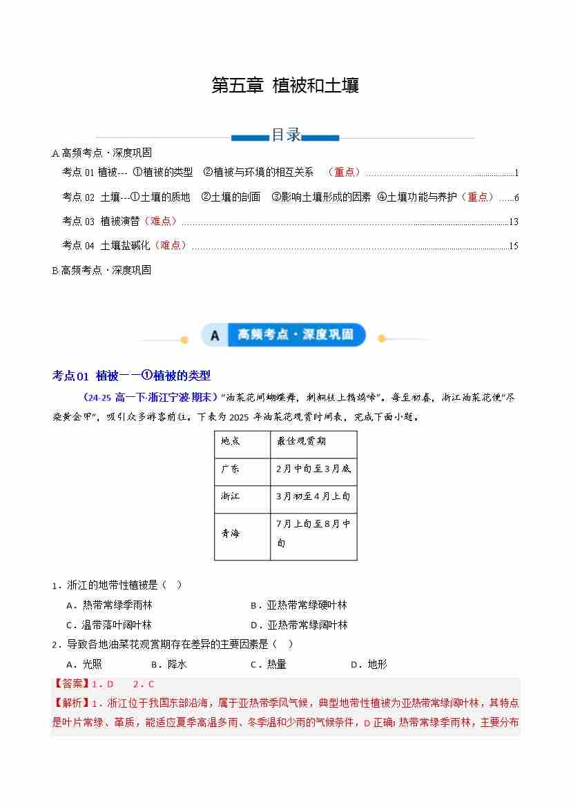 专题05 植被和土壤(专项训练)(教师版)