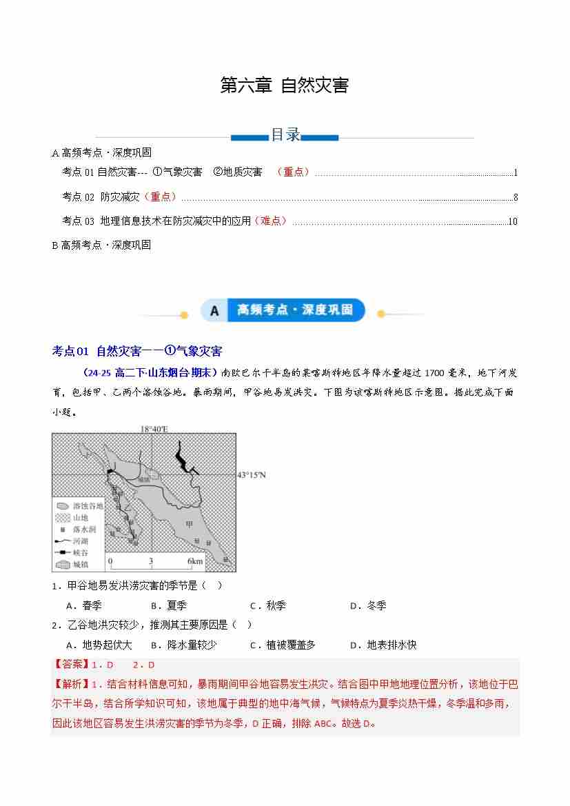 专题06 自然灾害(专项训练)(教师版)