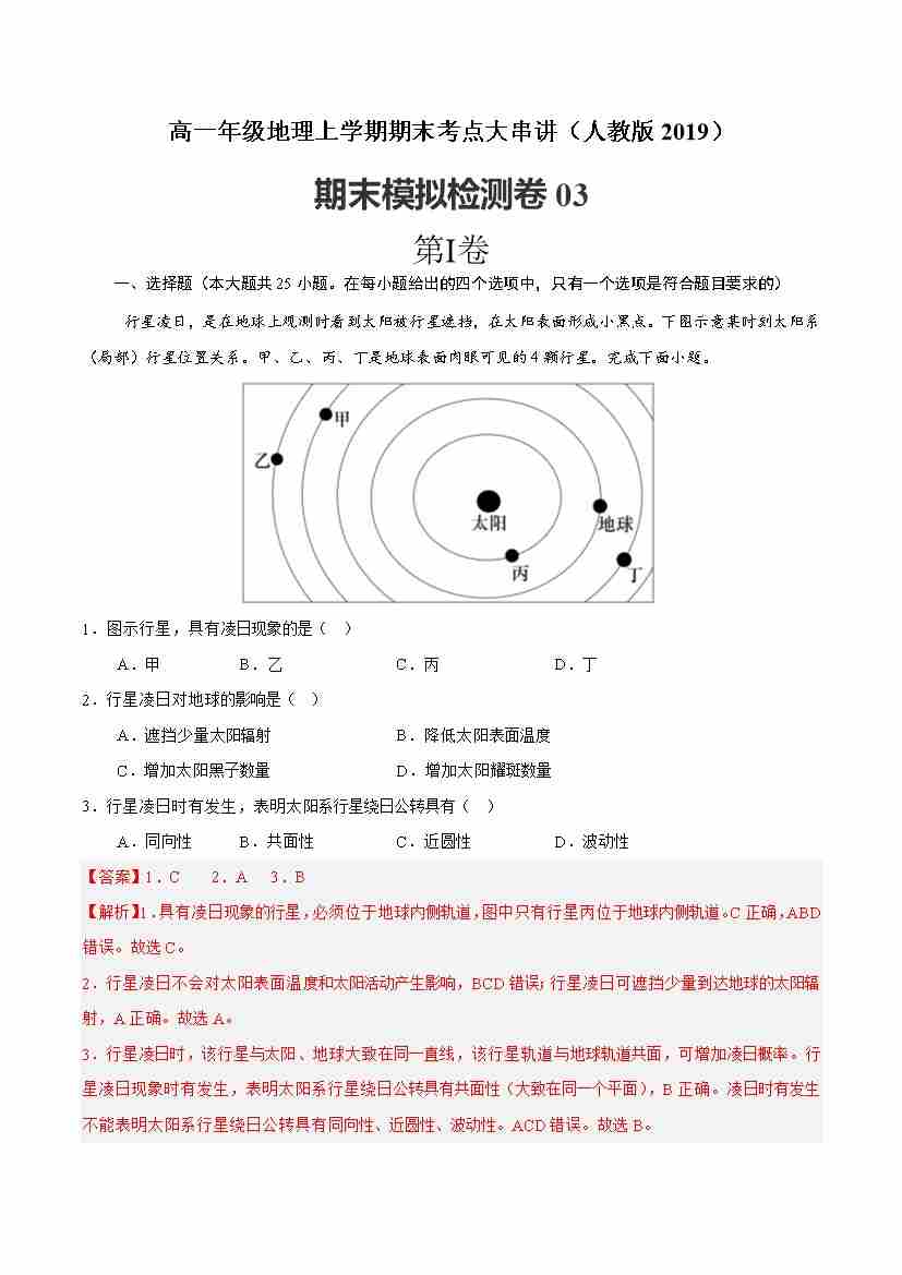 期末模拟检测卷03(学生版)