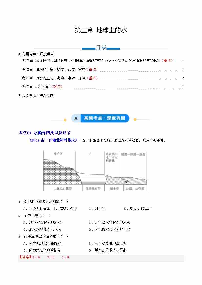 第三章 地球上的水(专项训练)(教师版)